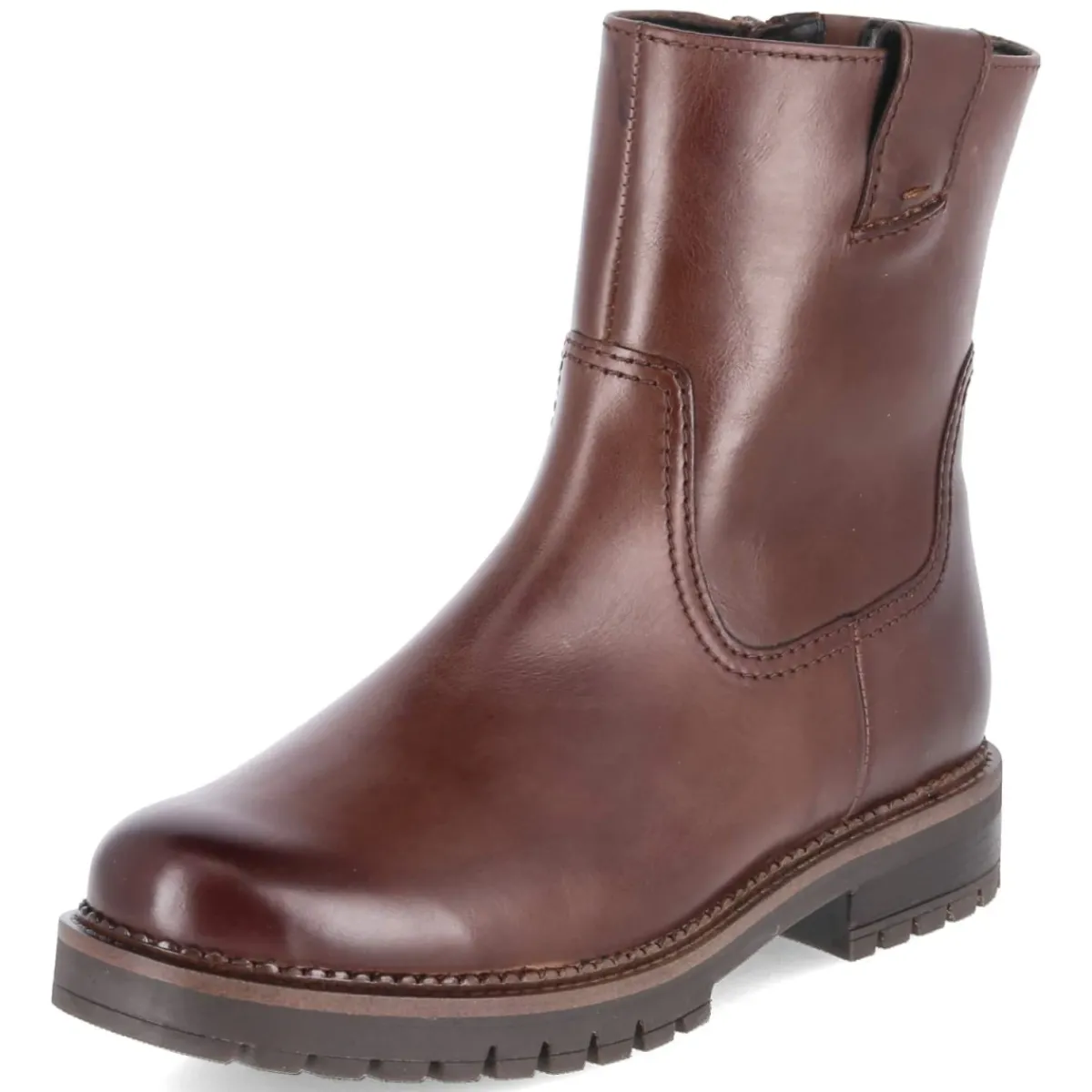 Die Gabor Stiefeletten für Damen vereinen zeitloses Design und Komfort in einem hochwertigen Begleiter für jeden Tag. Langlebiges Echtleder in edlem Braun trifft auf eine runde Spitze und einen 3 cm hohen Blockabsatz, der sicheren Stand verleiht. Der seitliche Reißverschluss mit kleinem Elastikeinsatz erleichtert den Einstieg, eine praktische Anziehlasche rundet die komfortable Handhabung ab. Innen sorgt eine Textildecksohle für ein angenehmes Fußklima, das komfortable Wechselfußbett bietet individuelle Anpassung und kann bei Bedarf ersetzt werden. Die rutschhemmende Profilsohle überzeugt auf verschiedenen Untergründen und unterstreicht die Alltagstauglichkeit. Das Modell fällt normal aus und lässt sich dank seines cleanen Glattleders besonders gut kombinieren – von Denim bis Business-Look. Modetipp: Zu cropped Straight-Leg-Jeans und einem Wollmantel entsteht ein moderner City-Look, der elegant und lässig zugleich wirkt.