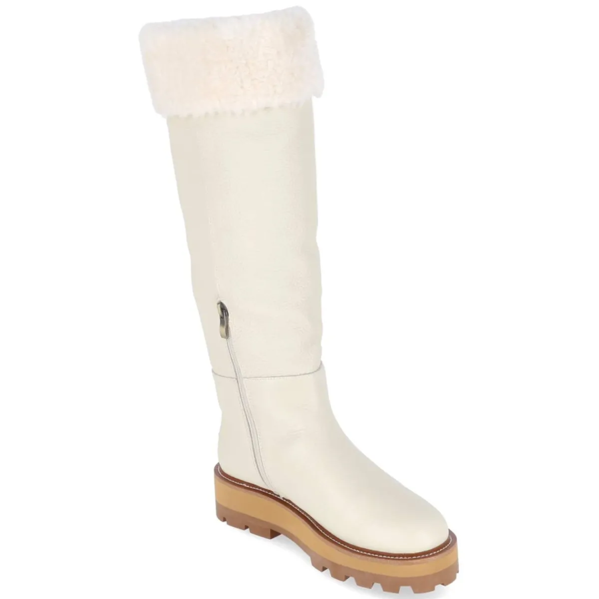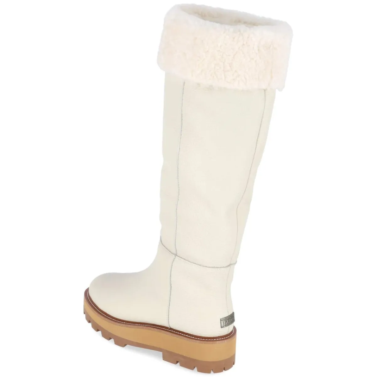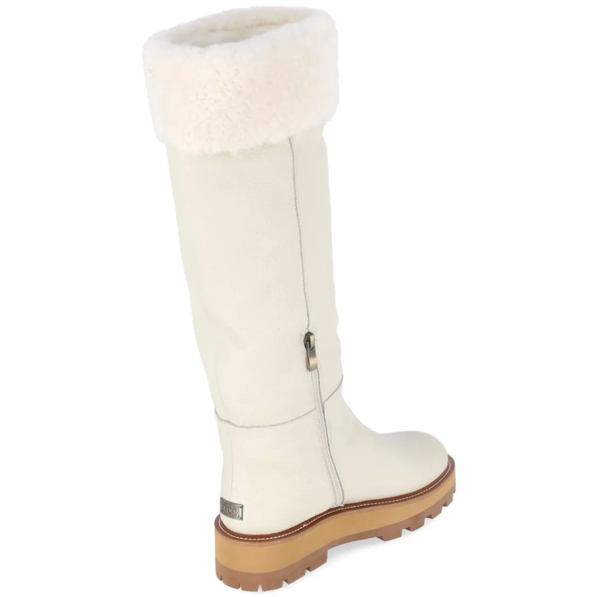 Der Winterstiefel TITAN von Australia Luxe verbindet urbane Eleganz mit Funktion. Weißes Glattleder in robuster Qualität trifft auf ein warmes Lammfellfutter, das zusammen mit der textilen, angenehm temperierten Decksohle und dem weich gepolsterten Einstieg in Teddyoptik hohen Tragekomfort bietet. Die runde Spitze sorgt für genügend Zehenfreiheit, die verstärkte Ferse mit Metall-Label setzt einen markanten Akzent. Ein praktischer Reißverschluss erleichtert das An- und Ausziehen, während die rutschfeste Profilsohle sicheren Halt auf winterlichen Wegen gibt. Der Schaft misst ca. 43 cm in der Höhe bei ca. 34 cm Umfang und umschließt zuverlässig. Fällt normal aus und ist für Erwachsene konzipiert. Modetipp: Zum cremefarbenen Wollmantel und einem gestrickten Midikleid stylen; blickdichte Strumpfhose und Lederhandschuhe in Taupe runden den cleanen Winterlook ab.