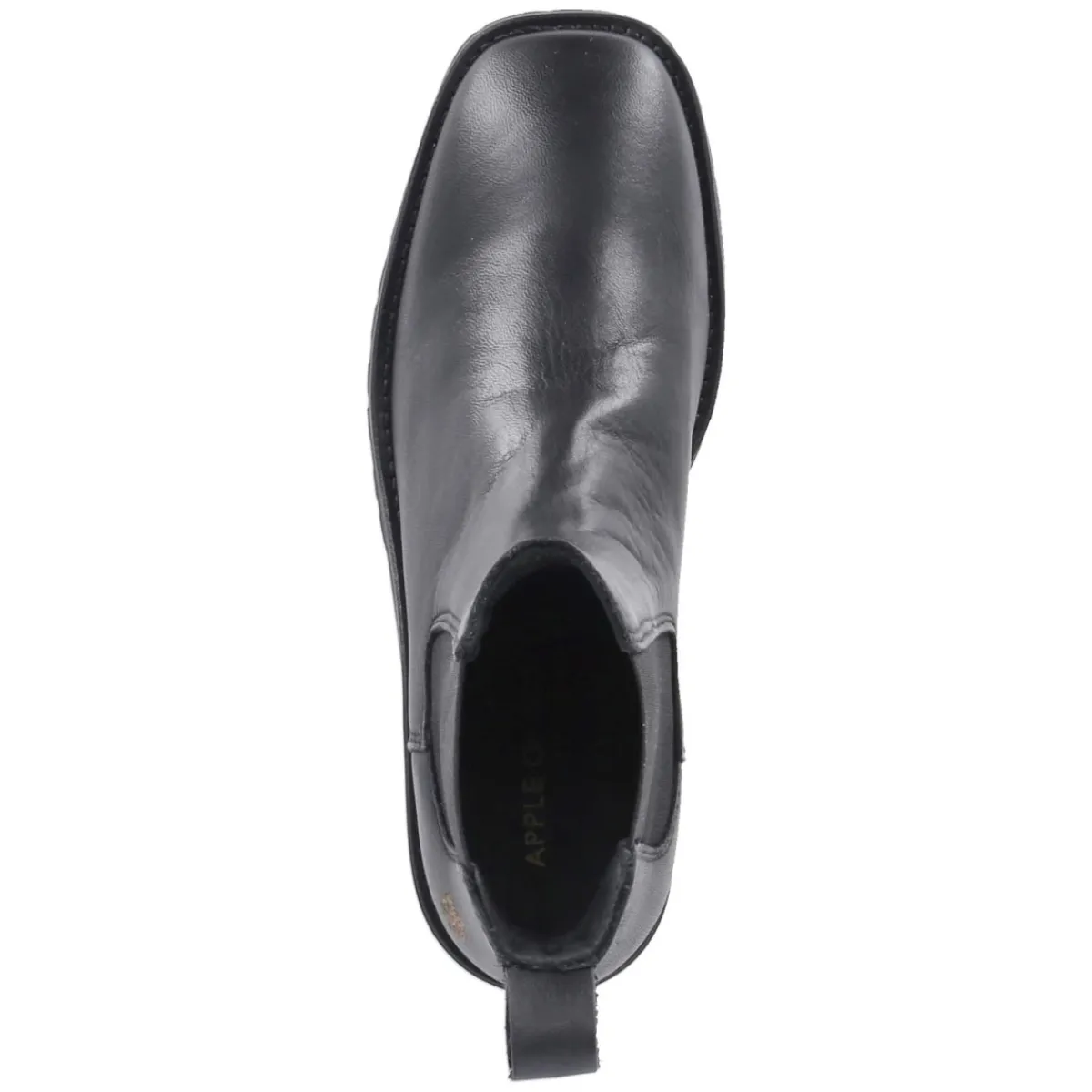 Der Chelsea Boot VASTI 1 von Apple of Eden setzt auf reduziertes Design und hochwertige Materialien. Glattes, langlebiges Echtleder in klassischem Schwarz trifft auf eine markante Karree-Spitze und einen stabilen Blockabsatz mit 4 cm Höhe. Beidseitige Elastikeinsätze und der Verzicht auf einen Verschluss sorgen für bequemes Hineinschlüpfen, während die verstärkte Ferse Halt gibt. Die Lederdecksohle und das gepolsterte Fußbett bieten angenehmen Tragekomfort im Alltag, die flexible, rutschfeste Laufsohle unterstützt sicheren Tritt. Das Modell fällt normal aus und lässt sich vielseitig kombinieren – von Office bis Off-Duty. Modetipp: Besonders stimmig wirkt der Boot zu einem gerippten Midi-Strickkleid und einem leicht oversized geschnittenen Blazer in dunklen Tönen.