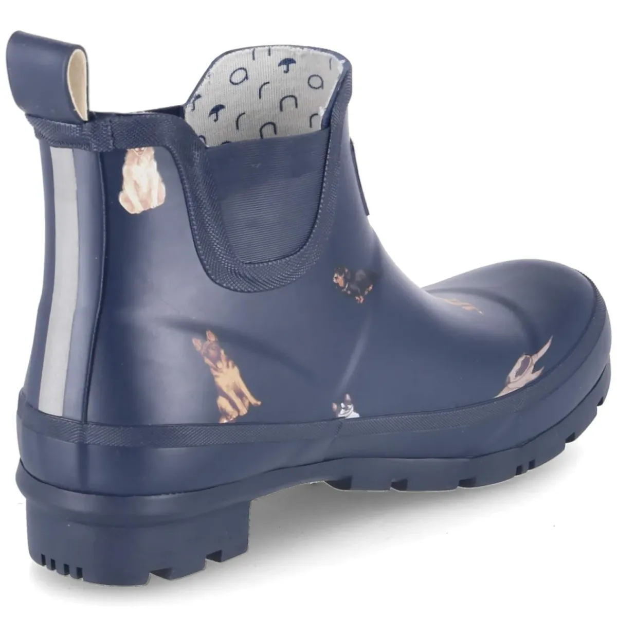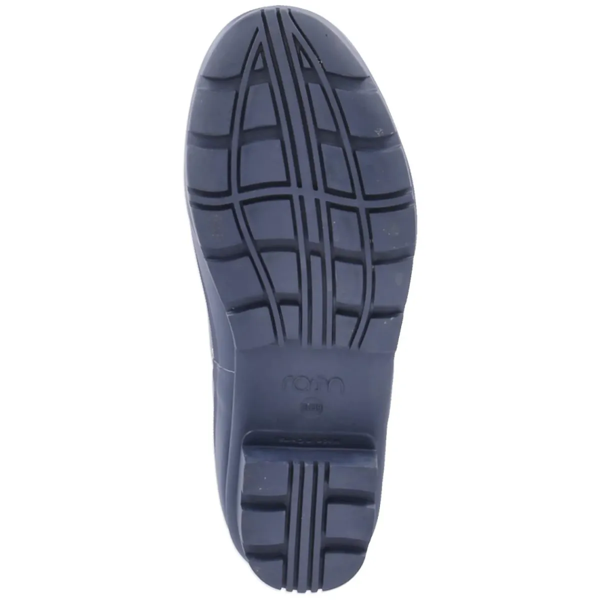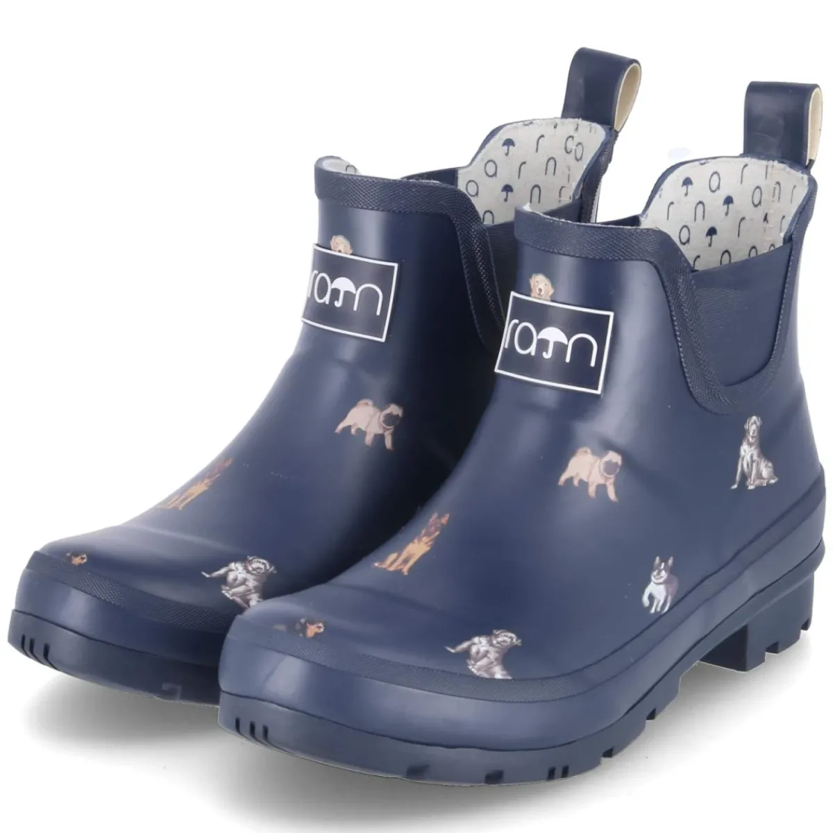 Der Chelsea Boot DOG von Rajn verbindet urbanen Charme mit praktischer Alltagstauglichkeit. Das blaue, bedruckte Gummi-Obermaterial mit markantem Hundeprint ist wasserabweisend und unkompliziert zu pflegen, während seitliche Elastikeinsätze und Anziehlasche einen mühelosen Einstieg ermöglichen. Die runde Schuhspitze, ein 3-cm-Blockabsatz und das modern designte Synthetik-Finish treffen auf ein gepolstertes, herausnehmbares Wechselfußbett und eine textile Decksohle für angenehmen Tragekomfort. Ein verstärkter Fußrahmen stabilisiert, die Ferse mit Reflektorstreifen und reflektierende Details erhöhen die Sichtbarkeit. Die flexible, rutschhemmende Profilsohle sorgt für Grip bei nassem Untergrund. Der Damenschuh fällt normal aus und ergänzt mühelos zeitgemäße Looks. Modetipp: Mit dunkler Straight-Jeans, gestreifter Stricksocke und kurzem Trench entsteht ein lässig-eleganter City-Style.