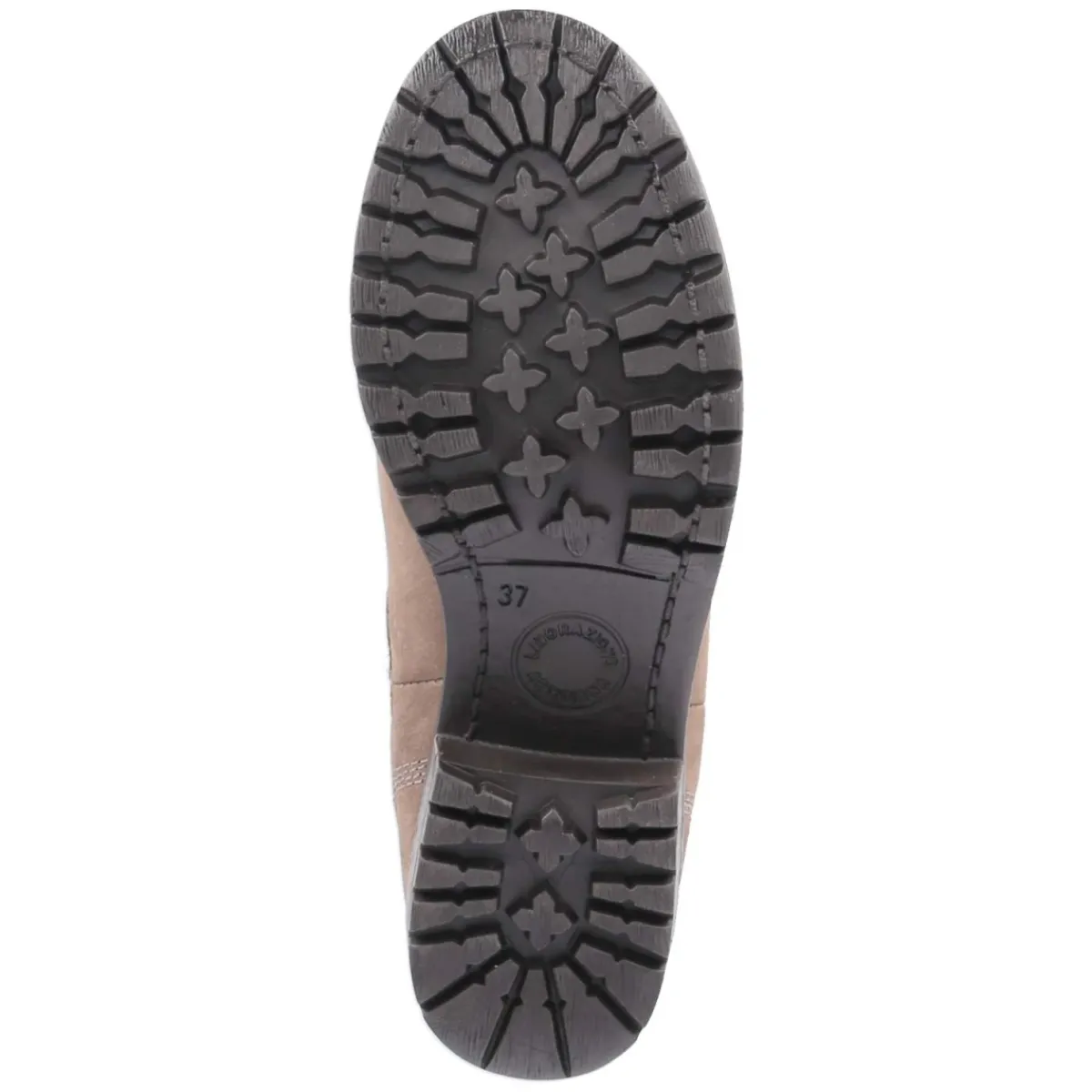 Die Chelsea Boots LIA von LAZAMANI präsentieren einen zeitlosen Look in elegantem Beige und überzeugen mit langlebigem Echtleder. Das runde Leistenbild und der 4,5 cm hohe Blockabsatz sorgen für eine harmonische Silhouette, während die flexible, rutschfeste Profilsohle verlässlichen Halt im Alltag bietet. Zwei große, seitliche Elastikeinsätze und doppelte Anziehlaschen ermöglichen ein komfortables Hineinschlüpfen ohne Verschluss. Ein gepolstertes, auswechselbares Fußbett unterstützt die Füße spürbar und kann bei Bedarf gegen eigene Einlagen getauscht werden. Die Decksohle aus Leder umschmeichelt den Fuß und ergänzt den hohen Tragekomfort. Dank normaler Passform lässt sich die Größe unkompliziert wählen, und die vielseitige Farbe eröffnet zahlreiche Styling-Optionen – von Business bis Casual. Modetipp: Besonders edel wirken die Boots zu cremefarbenen Strickteilen und einem kamelfarbenen Wollmantel mit geradem Denim.