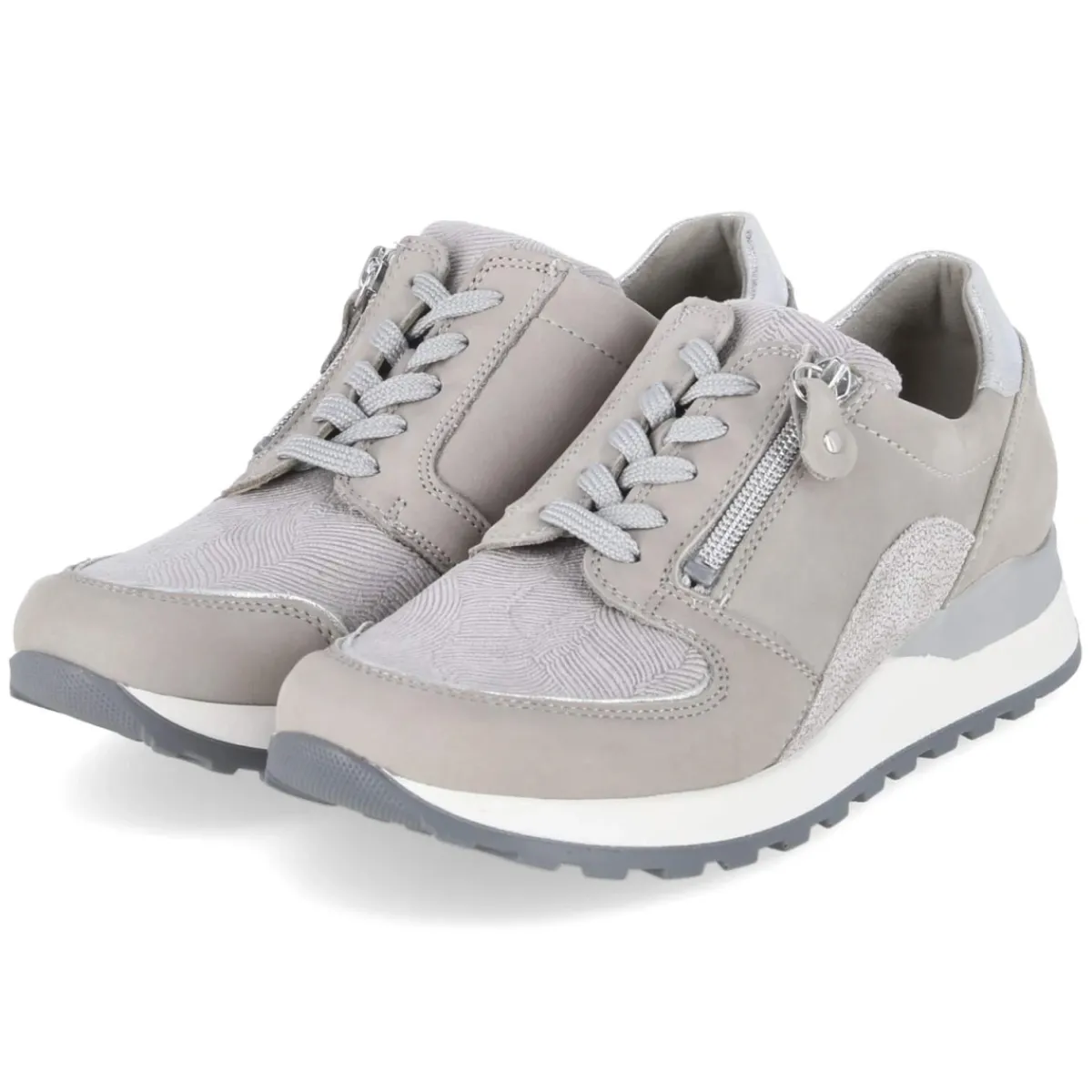 Der Halbschuh HIROKO von Waldläufer vereint sportliches Design mit Alltagstauglichkeit. Der robuste Material-Mix aus Leder und Textil zeigt sich in elegantem Grau, akzentuiert durch silbern glänzende Elemente und ein fein geprägtes Schuhblatt. Eine runde Schuhspitze und der verstärkte Fersen- und Zehenbereich sorgen für Schutz und ein harmonisches Profil. Die textile Decksohle und das komfortable Wechselfußbett unterstützen angenehm bei jedem Schritt, auch beim Einsatz eigener Einlagen. Schnürsenkel in Kombination mit zusätzlichem Reißverschluss erleichtern den Einstieg, während die flexible, rutschfeste Laufsohle verlässlichen Grip gibt. Der Größenhinweis fällt normal aus und unterstreicht die unkomplizierte Passform. Modetipp: Ton-in-Ton mit grauer Straight-Jeans und einem cremefarbenen Feinstrick-Pullover tragen, dazu eine kurze Steppjacke für lässigen City-Chic.