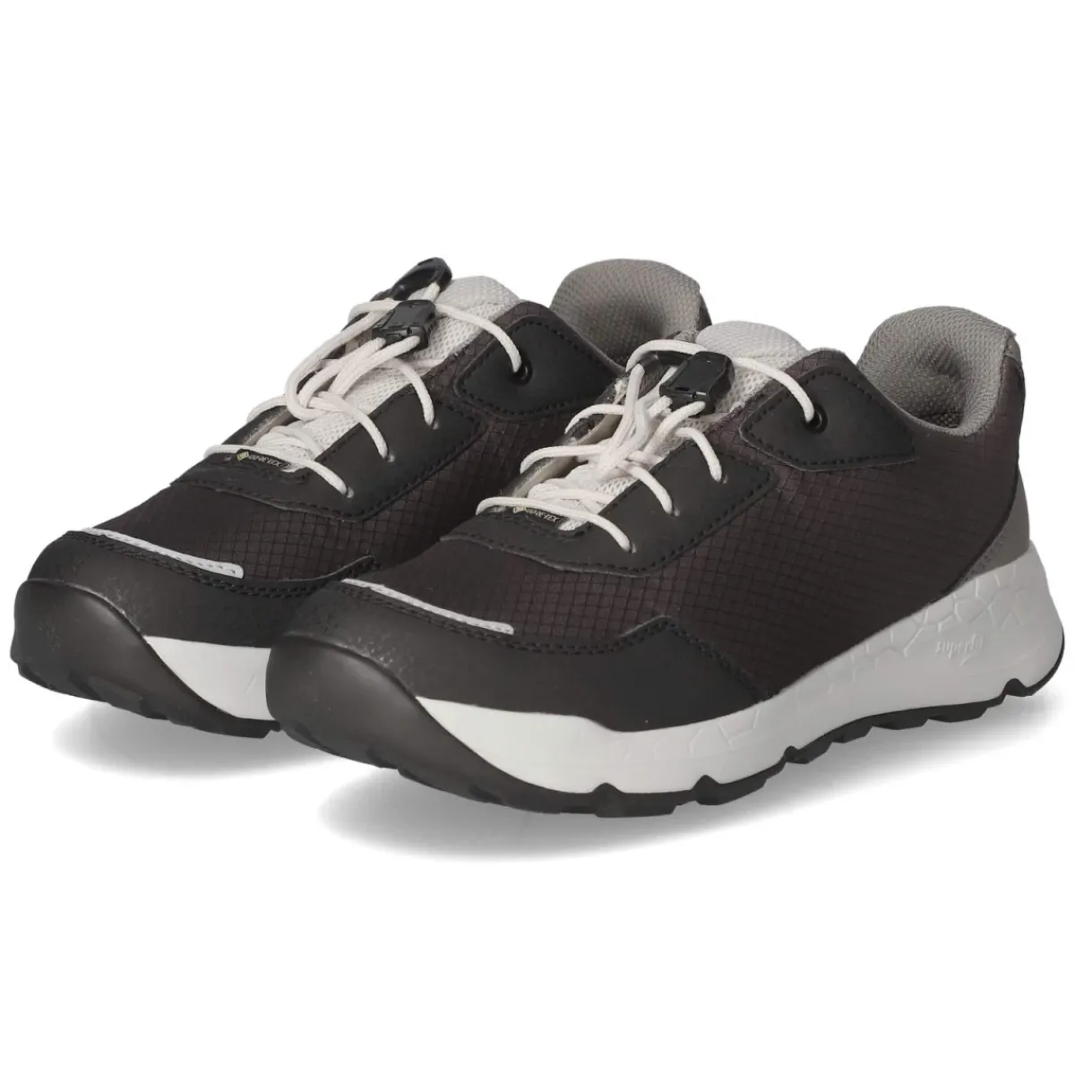 Der Superfit Low Sneaker FREE RIDE begleitet aktive Kids zuverlässig durch Kita, Schule und Freizeit. Das Obermaterial aus Textil und Synthetik trifft auf eine GORE‑TEX Ausstattung, die dauerhaft wasserfest und atmungsaktiv schützt – ideal bei wechselhaftem Wetter. Eine rund geformte Spitze sowie verstärkte Zehen- und Fersenbereiche erhöhen die Robustheit, während der gepolsterte Einstieg und das weich gepolsterte, austauschbare Wechselfußbett für angenehmen Tragekomfort sorgen. Der flexible Schnellverschluss erleichtert das An- und Ausziehen, die Anziehlasche unterstützt zusätzlich. Reflektierende Details verbessern die Sichtbarkeit, die rutschhemmende Laufsohle gibt sicheren Halt. Mit mittlerer Weite und normal ausfallender Größe bietet der Schuh eine verlässliche Passform. Modetipp: Mit schwarzer Jogpants und einer farbigen Softshelljacke entsteht ein sportlicher City-Look.