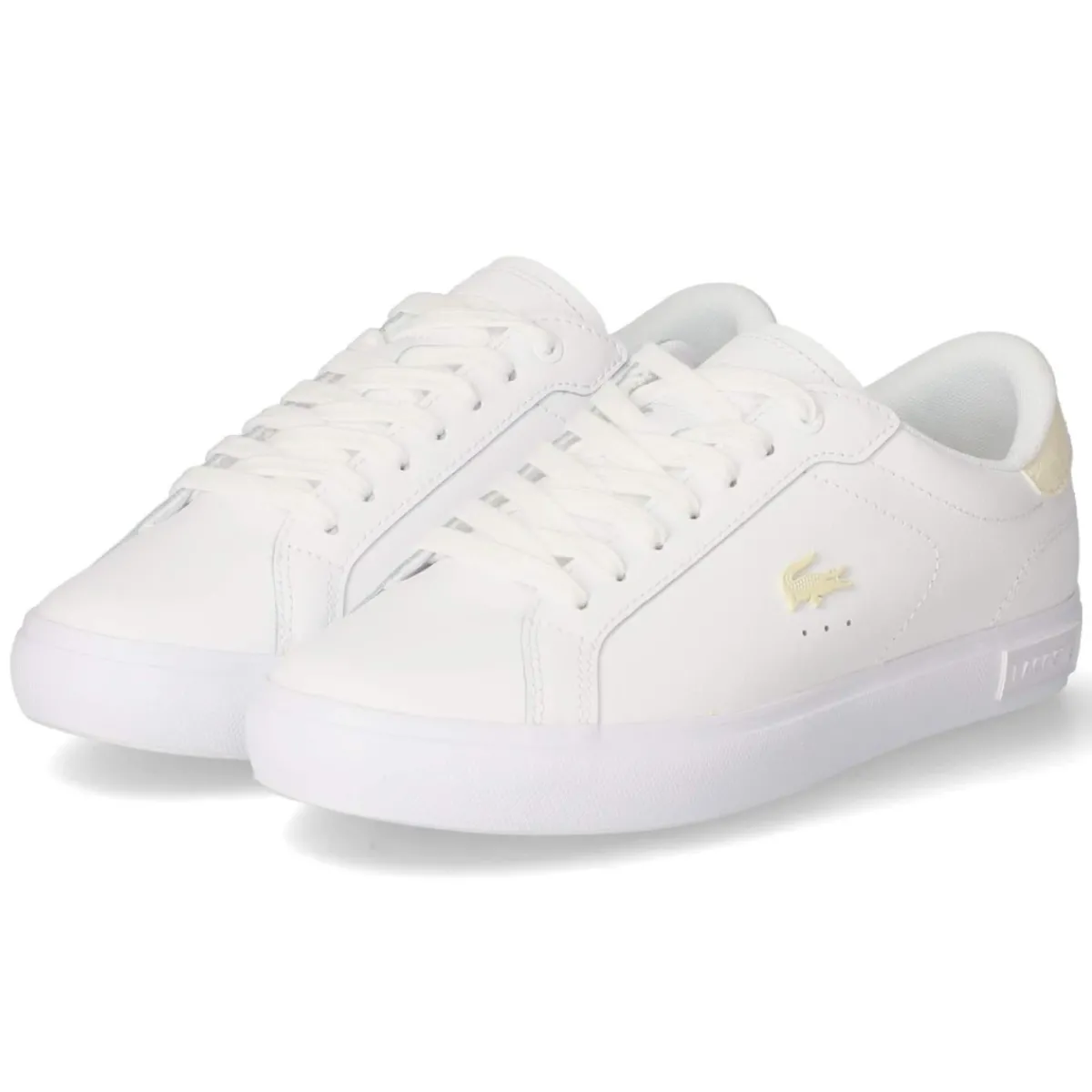 Der Low Sneaker POWERCOURT von Lacoste vereint klare Linien mit ikonischen Details. Glattes, atmungsaktives Echtleder formt das weiße Obermaterial, die runde Spitze und die klassische Schnürung sorgen für zeitlose Anmutung und präzise Anpassung. Ein gepolstertes Fußbett mit textiler Decksohle bietet angenehme Dämpfung im Alltag, während die flexible, rutschfeste Cupsohle sicheren Tritt gibt. Stabilität liefert die verstärkte Ferse, akzentuiert durch das markentypische Krokodil und eine Fersenpartie in beigem Lackdesign; dezente Reptilprint-Elemente setzen einen edlen Kontrast. Der Schuh fällt normal aus und richtet sich an Damen, die Wert auf Komfort und Stil legen. Modetipp: Zu einer hellen Wide-Leg-Jeans, weißem T‑Shirt und beigem Trench entsteht ein cleaner Look; goldfarbene Creolen runden den Auftritt ab.