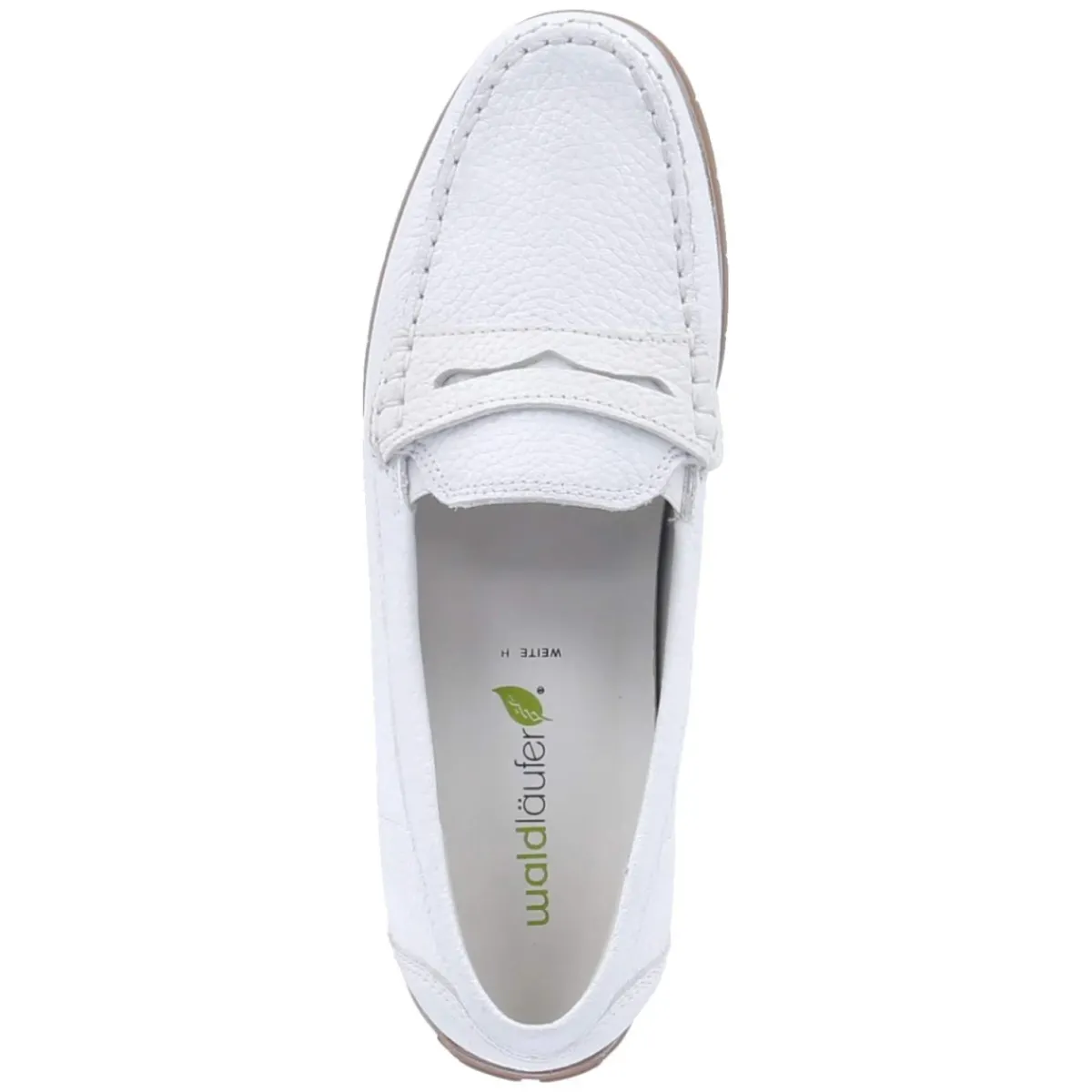 Mokassins LUCY von Waldläufer vereinen zeitlose Eleganz mit durchdachtem Komfort. Feines, weißes Glattleder in robuster Qualität schmiegt sich dank rund zulaufender Form angenehm an den Fuß, Ziernähte und klassischer Zierriemen unterstreichen den authentischen Mokassin-Charakter. Ein verstärkter Einstieg und die stabilisierte Ferse geben Halt, während Lederfutter und das gepolsterte, herausnehmbare Lederfußbett mit Wechselfunktion für wohltuende Dämpfung auf langen Tagen sorgen – auch ideal für eigene Einlagen. Die flexible, rutschhemmende Laufsohle unterstützt einen natürlich-weichen Abrollvorgang. Fällt größengetreu aus und lässt sich mühelos kombinieren, vom City-Look bis zum Büro. Modetipp: Zu cremefarbenen Chinos und einem lockeren Stricktop entsteht ein klarer, sommerlicher Auftritt.