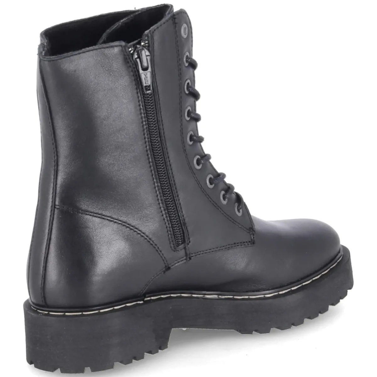 Der Schnürboot von Fräulein Frida verbindet zeitloses Design mit funktionalem Komfort. Glattes, langlebiges Echtleder in klassischem Schwarz verleiht urbanen Chic, während die runde Spitze und der 3,5 cm hohe Blockabsatz für eine ausgewogene Silhouette sorgen. Schnürsenkel geben variablen Halt, der zusätzliche Reißverschluss erleichtert das An- und Ausziehen im Alltag. Ein leichtes, weiches Fleecefutter wärmt an kühlen Tagen, die textile, weich gepolsterte Decksohle unterstützt angenehmes Tragen von morgens bis abends. Die verstärkte Ferse stabilisiert Schritt für Schritt, die kräftig profilierte, rutschfeste Laufsohle bietet verlässliche Traktion auf nassem Pflaster. Der Boot fällt normal aus und passt sich vertraut an. Modetipp: Zu Cropped-Jeans und Wollmantel entsteht ein klarer City-Look, mit Feinstrickkleid und blickdichter Strumpfhose wirkt der Boot feminin und modern.
