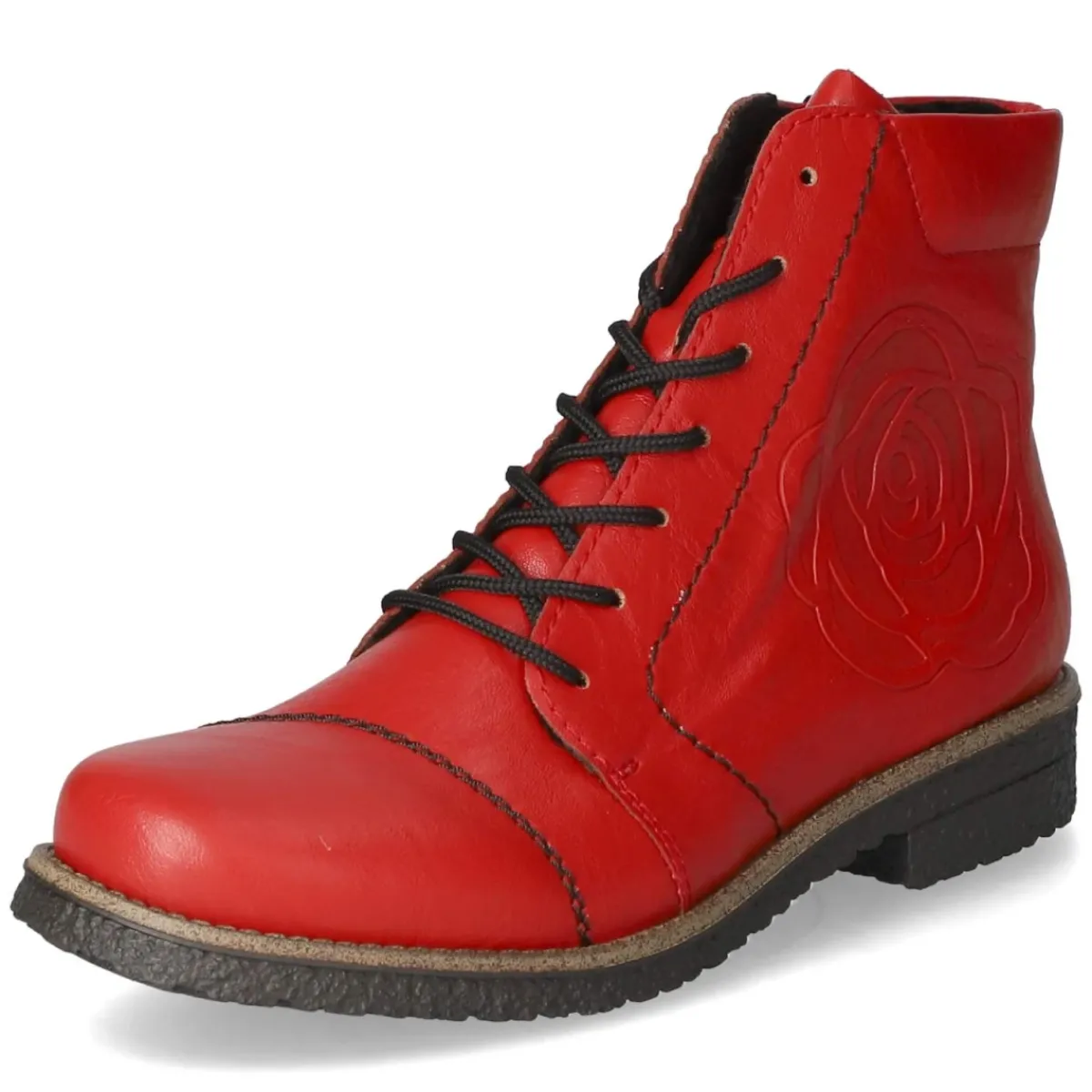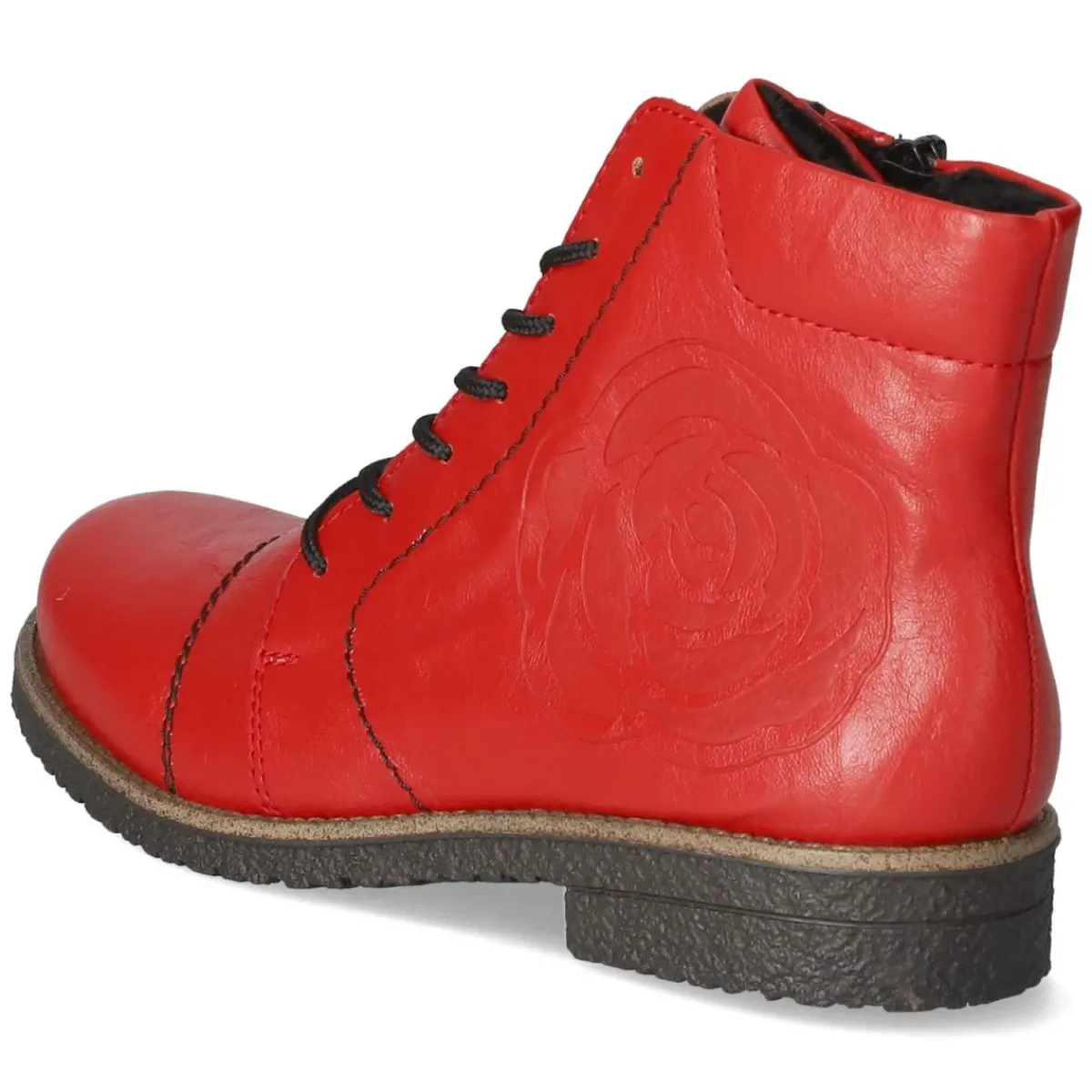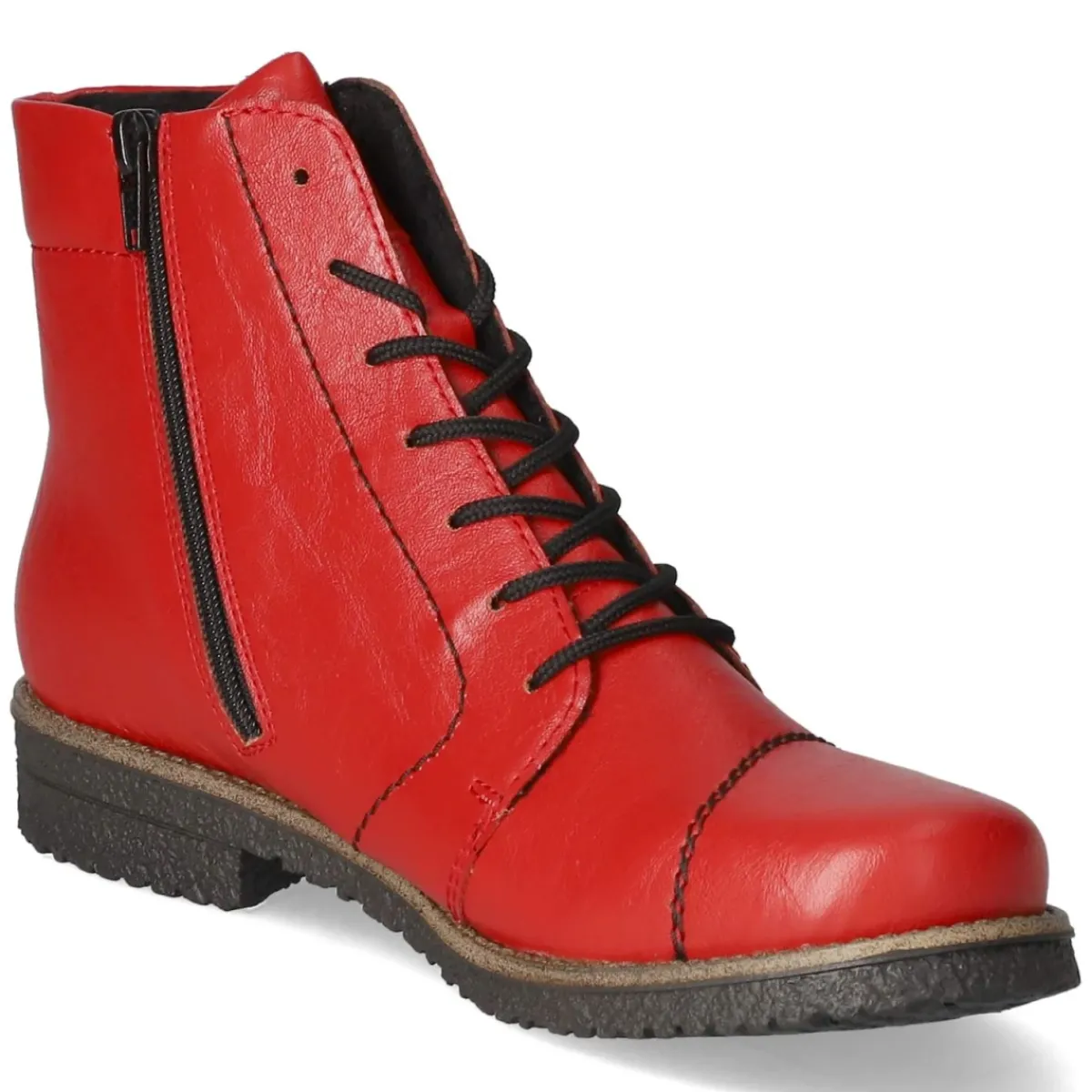 Die roten Schnürstiefeletten von Rieker vereinen Komfort und Alltagstauglichkeit in einem zeitlosen Design. Das pflegeleichte Kunstleder zeigt eine satte Farbe und wird durch runde Kappe und 3 cm hohen Blockabsatz alltagstauglich ergänzt. Ein weiches Textilfutter sowie die textile Decksohle sorgen für ein angenehmes Fußklima, während das herausnehmbare Wechselfußbett individuellen Einlagen Platz macht. Dank Schnürung lässt sich die Weite präzise anpassen; der zusätzliche Reißverschluss ermöglicht schnelles An- und Ausziehen. Die Passform fällt normal aus, was die Größenauswahl unkompliziert macht. Robuste Verarbeitung trifft auf leichte Flexibilität – ideal für lange Tage in der Stadt oder im Büro. Modetipp: Die leuchtende Rotnuance setzt zu dunkler Denim und einem grauen Wollmantel moderne Akzente, noch harmonischer mit einer Tasche in Ton-in-Ton-Optik.