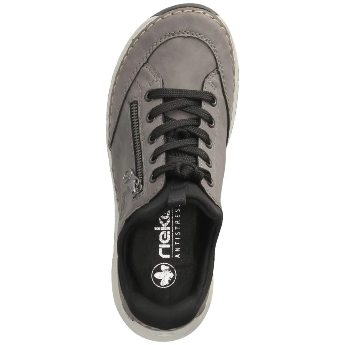 Der Slip Ins Sneaker von Rieker in Grau vereint lässigen City-Style mit komfortorientierter Ausstattung. Das Obermaterial aus Textil und Synthetik zeigt einen modernen Material-Mix, während die runde Schuhspitze und der bequem gepolsterte Einstieg entspanntes Tragen ermöglichen. Dank Schnürung lässt sich der Sitz individuell anpassen; eine praktische Anziehlasche erleichtert das Hineinschlüpfen. Markendetails und ein Zierreißverschluss setzen dezente Akzente. Die flexible, rutschhemmende Laufsohle mit Sichtfenster sorgt für dynamische Optik und sicheren Tritt, der verstärkte Zehen- und Fersenbereich addiert Stabilität. Die Lederdecksohle rundet den Tragekomfort ab. Fällt normal aus und ist auf die Bedürfnisse erwachsener Damen abgestimmt. Modetipp: Mit hell gewaschener Jeans, Feinstrick und einem grauen Trench entsteht ein müheloser, urbaner Ton-in-Ton-Look.