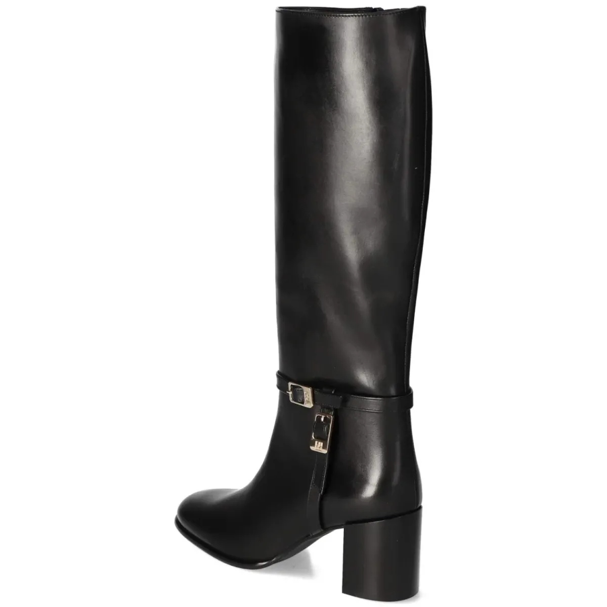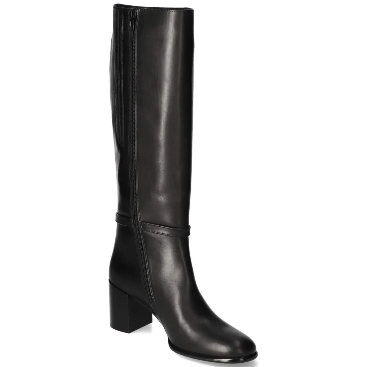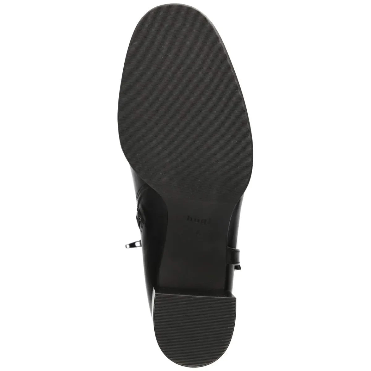 Der Damenstiefel von Högl setzt in tiefem Schwarz auf zeitlose Eleganz und verlässlichen Komfort. Glattes, atmungsaktives Echtleder und eine lederne Decksohle umschließen den Fuß angenehm, während das leichte Futter an kühlen Tagen wärmt. Der 7 cm hohe Blockabsatz streckt die Silhouette und bleibt dank breiter Auflagefläche stabil. Eine runde Spitze sorgt für bequemen Zehenraum, der praktische Reißverschlusseinstieg erleichtert das An- und Ausziehen. Zwei Zierriemen mit goldfarbenen Schnallen akzentuieren den klassischen Look, der Schaft misst ca. 43 cm in der Höhe und ca. 36 cm im Umfang. Die flexible, rutschhemmende Laufsohle bietet Trittsicherheit auf urbanem Terrain. Das Modell fällt normal aus und empfiehlt sich als vielseitiger Begleiter von Büro bis Dinner. Modetipp: Zu Midirock in A-Linie und Wollmantel tragen, alternativ zu schmaler Denim, die locker in den Schaft gesteckt wird.