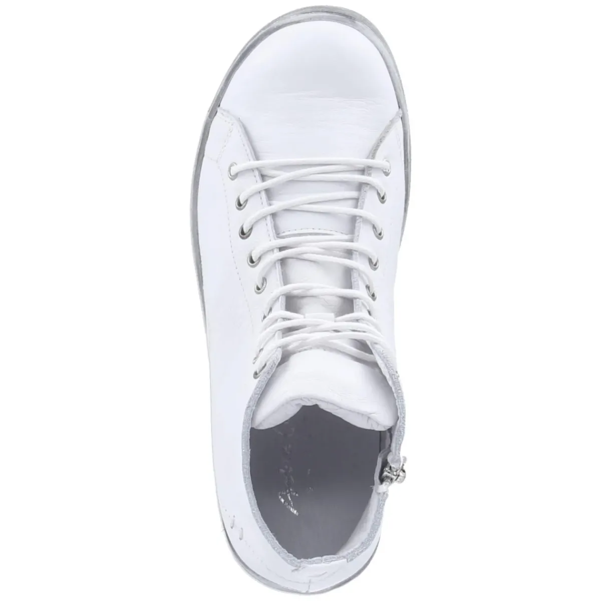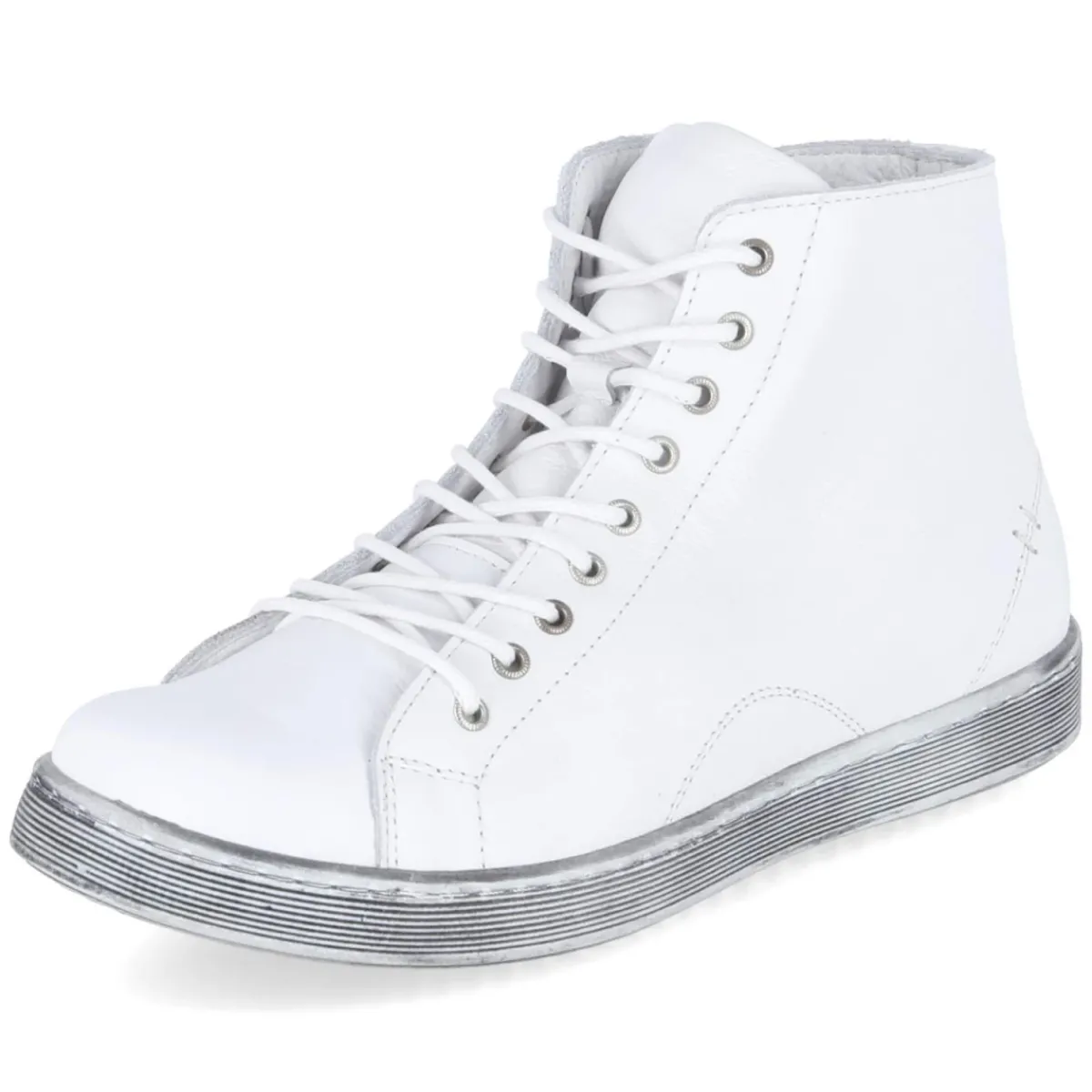 Die weißen Stiefeletten von Andrea Conti vereinen robuste Qualität mit moderner Leichtigkeit. Langlebiges Echtleder in geschmeidigem Glattleder-Finish sorgt für eine wertige Haptik und formstabiles Tragegefühl. Die runde Schuhspitze und die komfortable Zehenbox geben den Zehen Raum, während eine gepolsterte Zunge und die verstärkte Ferse sanfte Unterstützung bieten. Für einfaches An- und Ausziehen steht der bequeme Reißverschlußeinstieg bereit; die Schnürung ermöglicht passgenaue Regulierung. Das komfortable Wechselfußbett und die Decksohle aus Leder begleiten zuverlässig durch lange Tage. Eine flexible, rutschhemmende Cupsohle im Used Look sorgt für Grip und eine moderne Note. Die Passform fällt normal aus und lässt sich vielseitig kombinieren – von Denim bis Midirock. Modetipp: Zum monochromen Ensemble mit heller Straight-Leg, feinem Strick und strukturiertem Trench entsteht ein cleaner, zeitloser City-Look.