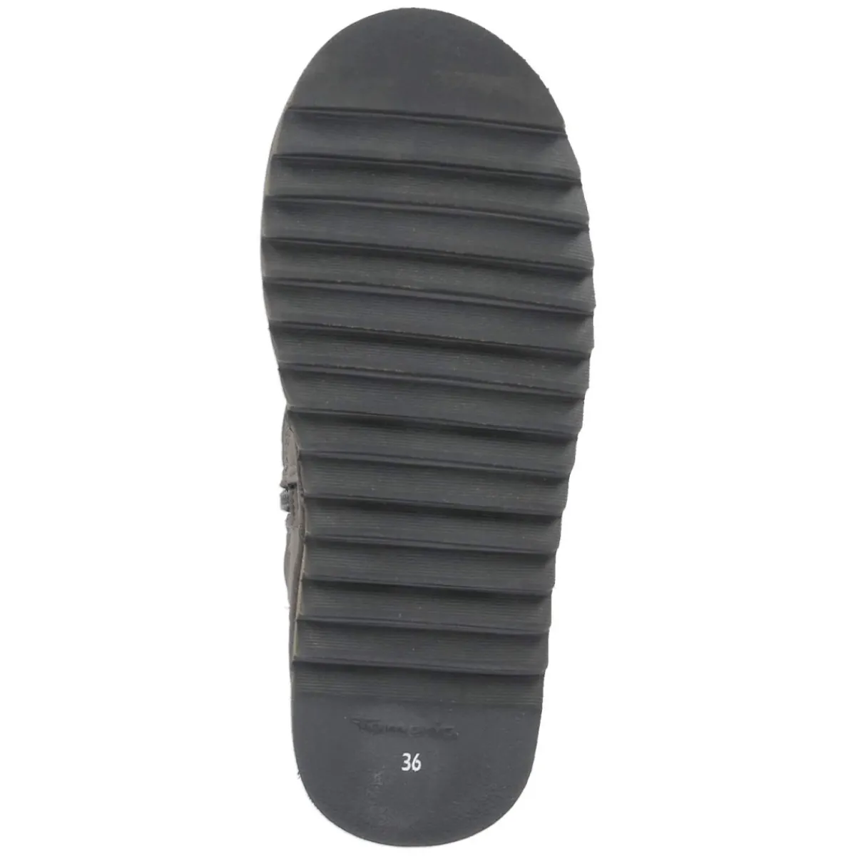 Diese Damen-Winterboots von Tamaris vereinen Retro-Snowboot-Charme mit moderner Funktion. Das dunkelgrüne (olive) Obermaterial aus Textil & Synthetik zeigt eine matte Quersteppoberfläche, die pflegeleicht ist und dem Look Struktur gibt. Ein weicher Schaft mit Gummizug und Schnellverschluss umschließt angenehm, während der bequeme Reißverschlusseinstieg das An- und Ausziehen erleichtert. Warmfutter und textile Decksohle sorgen für behagliche Wärme an kalten Tagen, das geringe Gewicht erhöht den Tragekomfort. Die runde Spitze und der verstärkte Fußrahmen ergänzen das robuste Design. Die dicke Sohle mit 3,5 cm Plateau verleiht eine sanfte Höhe und stabilen Stand. Der Schnitt fällt normal aus – ideal für den gewohnten Größengriff. Modetipp: Ton-in-Ton mit Steppmantel in Khaki und grob gestrickten Leggings kombinieren; dazu eine Beanie in Creme für einen harmonischen Winter-Look.