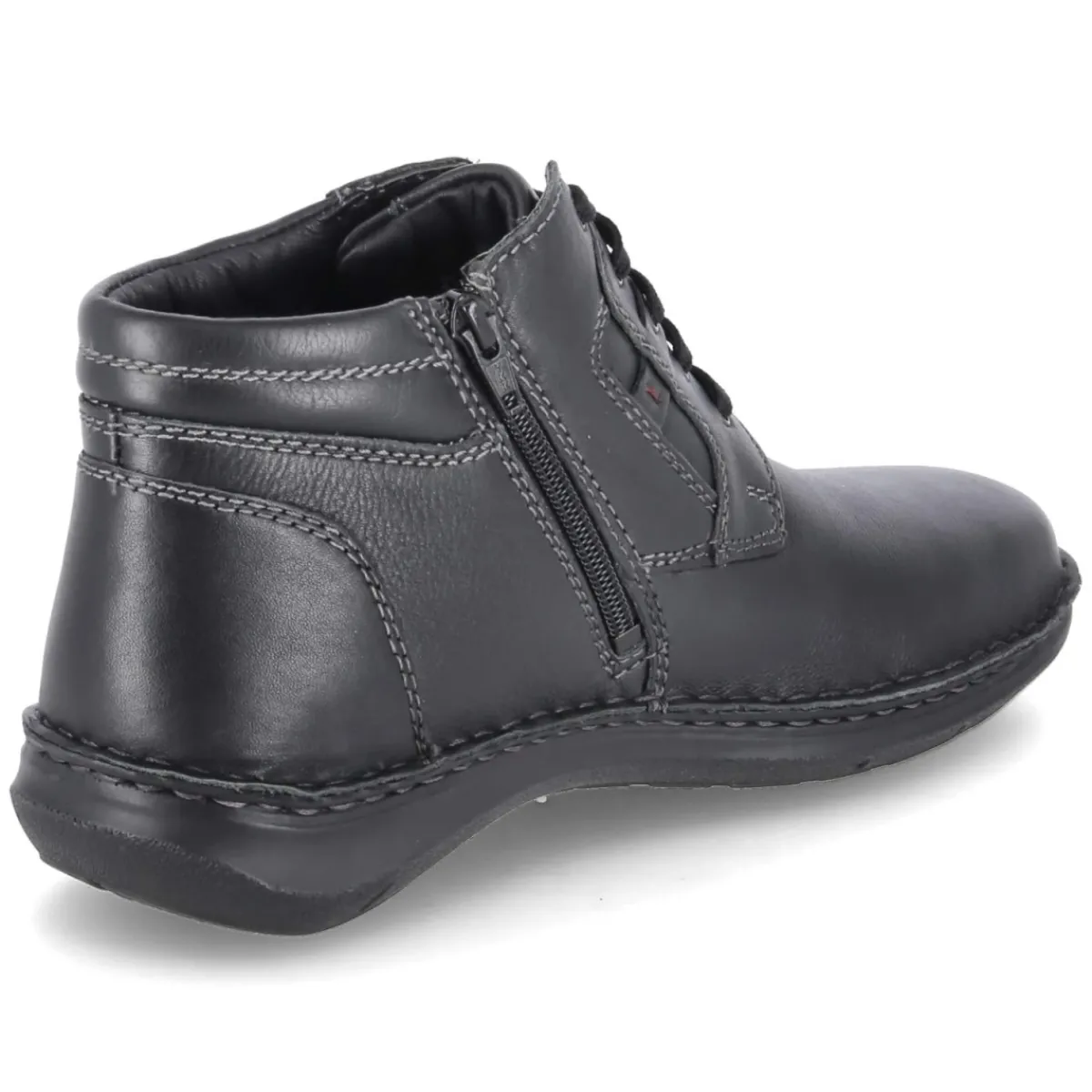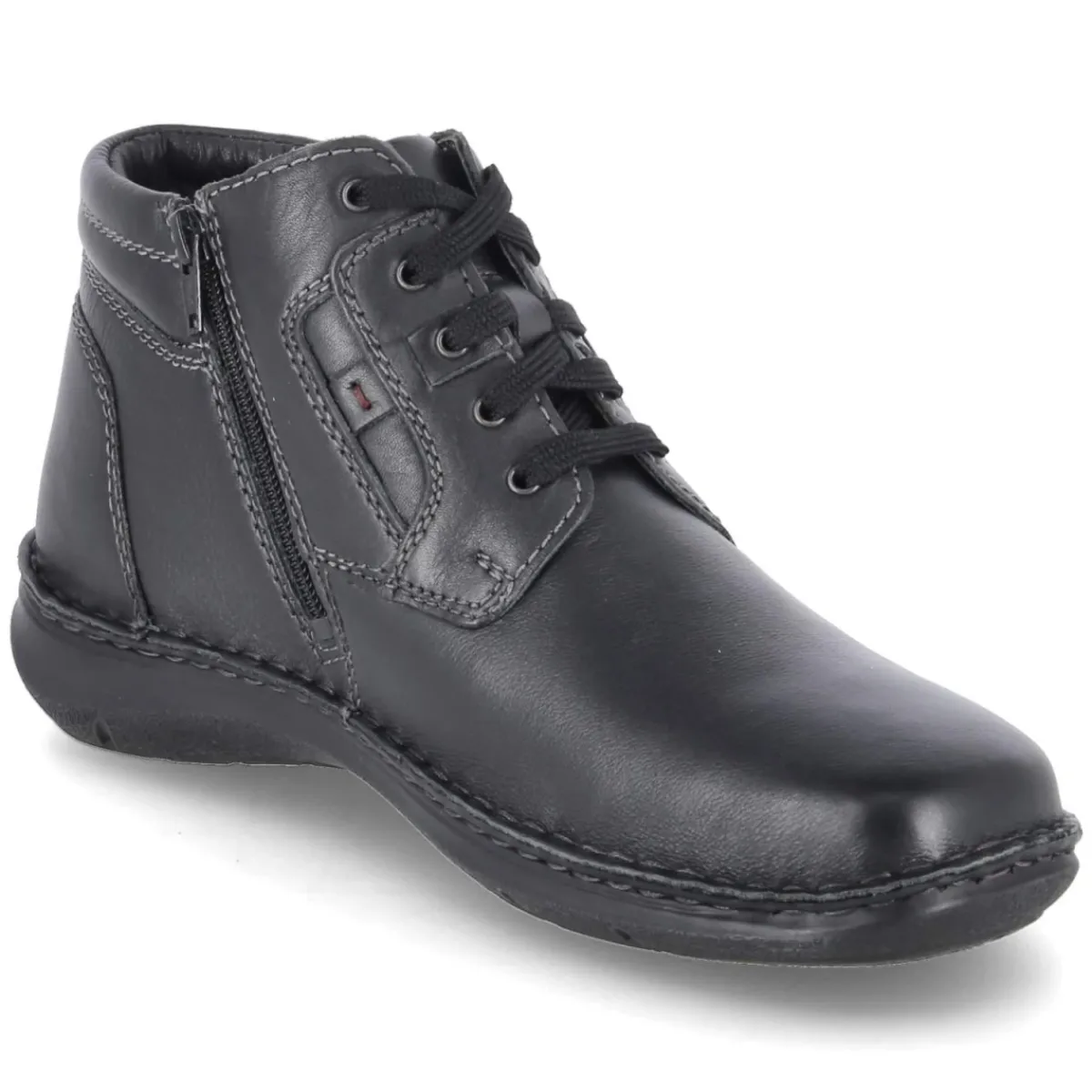 Der Winterboot NEW ANVERS 35 von Josef Seibel vereint robuste Eleganz und Komfort für kalte Tage. Schwarzes Glattleder in langlebiger Qualität trifft auf eine moderne, karreeförmige Schuhspitze. Das warme, zugleich leichte Futter umschließt den Fuß angenehm, während der gepolsterte Einstieg und die verstärkte Ferse zusätzlichen Halt geben. Praktisch im Alltag: Schnürung für präzisen Sitz und ein seitlicher Reißverschluss als bequeme Einstiegshilfe. Das komfortable Wechselfußbett lässt sich austauschen, etwa gegen eigene Einlagen, die Decksohle besteht aus Textil. Mit normaler Passform eignet sich der Boot ideal für Herren, die einen vielseitigen Begleiter suchen. Modetipp: In Kombination mit dunklem Wollmantel, grobem Strick und Raw-Denim entsteht ein stilvoller City-Winterlook.