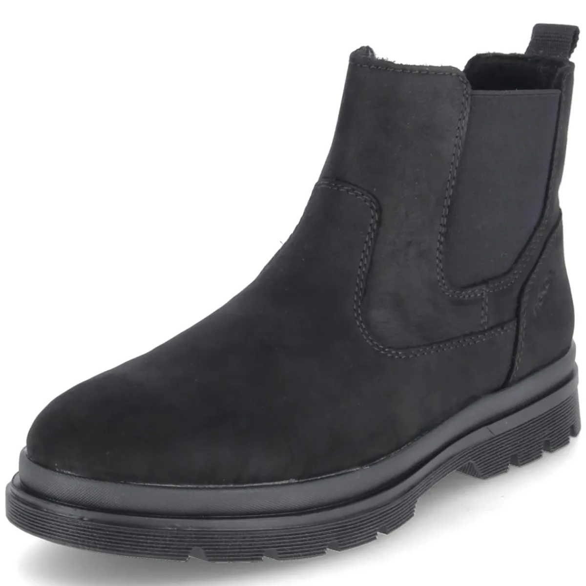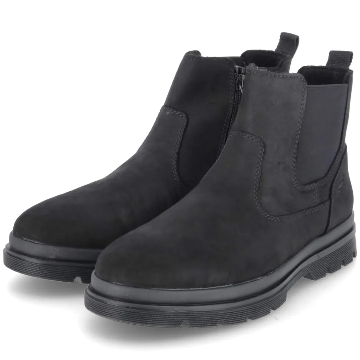 Der klassische Herren-Chelsea von Rieker zeigt sich in tiefschwarzem Rauleder und verbindet langlebiges Echtleder mit modernem Komfort. Ohne Verschluss, mit beidseitigem Elastikeinsatz und praktischer Anziehlasche gelingt das Hineinschlüpfen mühelos. Eine runde Spitze, die Lederdecksohle sowie ein gepolstertes, herausnehmbares Fußbett sorgen für angenehm gedämpfte Schritte, der verstärkte Fersenbereich und die flexible, rutschfeste Laufsohle geben Halt im Alltag. Das leichte Futter wärmt an kühlen Tagen, während die Passform normal ausfällt und erwachsene Träger zuverlässig begleitet. Souverän zu Business wie Freizeit, reduziert im Design und vielseitig kombinierbar. Modetipp: Mit dunkler Slim-Fit-Jeans, Rollkragenpullover und kamelfarbenem Wollmantel entsteht ein zeitloser City-Look.