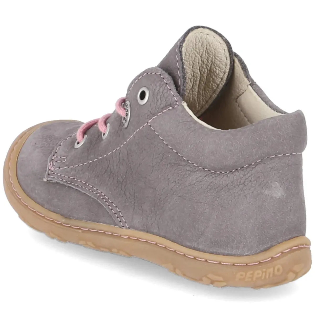 Der Halbschuh CORY von Pepino bringt Stabilität und Weichheit in harmonischen Einklang. Das Obermaterial aus hochwertigem Rauleder überzeugt mit langlebiger Qualität und einer samtigen Haptik, während Lederfutter und Lederdecksohle für ein ausgeglichenes Fußklima sorgen. Die runde Schuhspitze und der verstärkte Zehenbereich geben den kleinen Füßen Bewegungsfreiheit und Schutz. Rosa Schnürsenkel setzen einen frischen Akzent und sichern einen anpassbaren Sitz; der gepolsterte Einstieg erhöht den Wohlfühlfaktor bei jedem Schritt. Besonders flexibel zeigt sich die sehr griffige, rutschhemmende Laufsohle, die natürliche Abrollbewegungen unterstützt. Ein Wechselfußbett bietet praktische Pflege- und Anpassungsmöglichkeiten. CORY fällt normal aus und punktet mit typischen Markendetails. Modetipp: Zu grauen Tönen passen farbige Stricksocken und Denim, die rosa Schnürung greift Accessoires in Pastell ideal auf.
