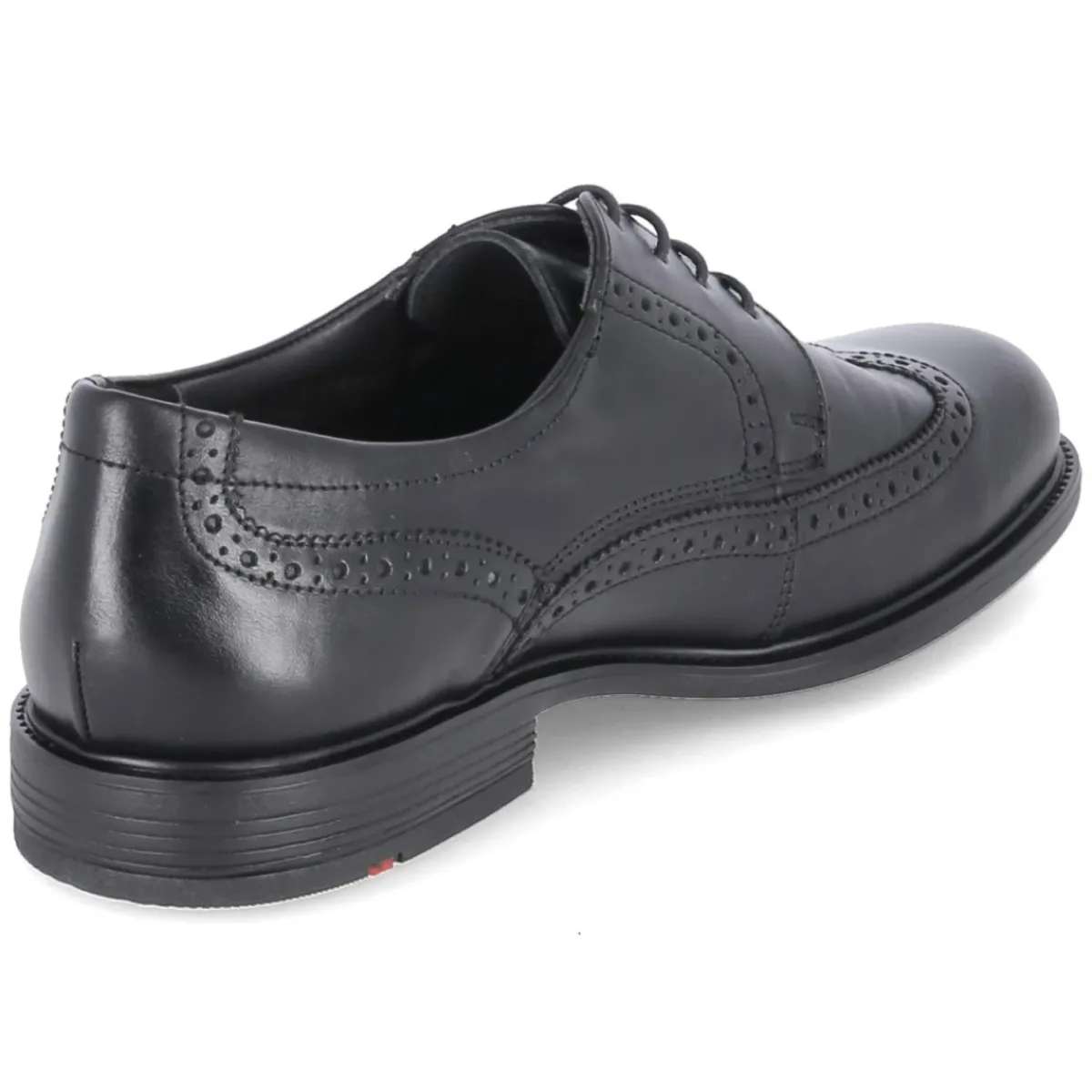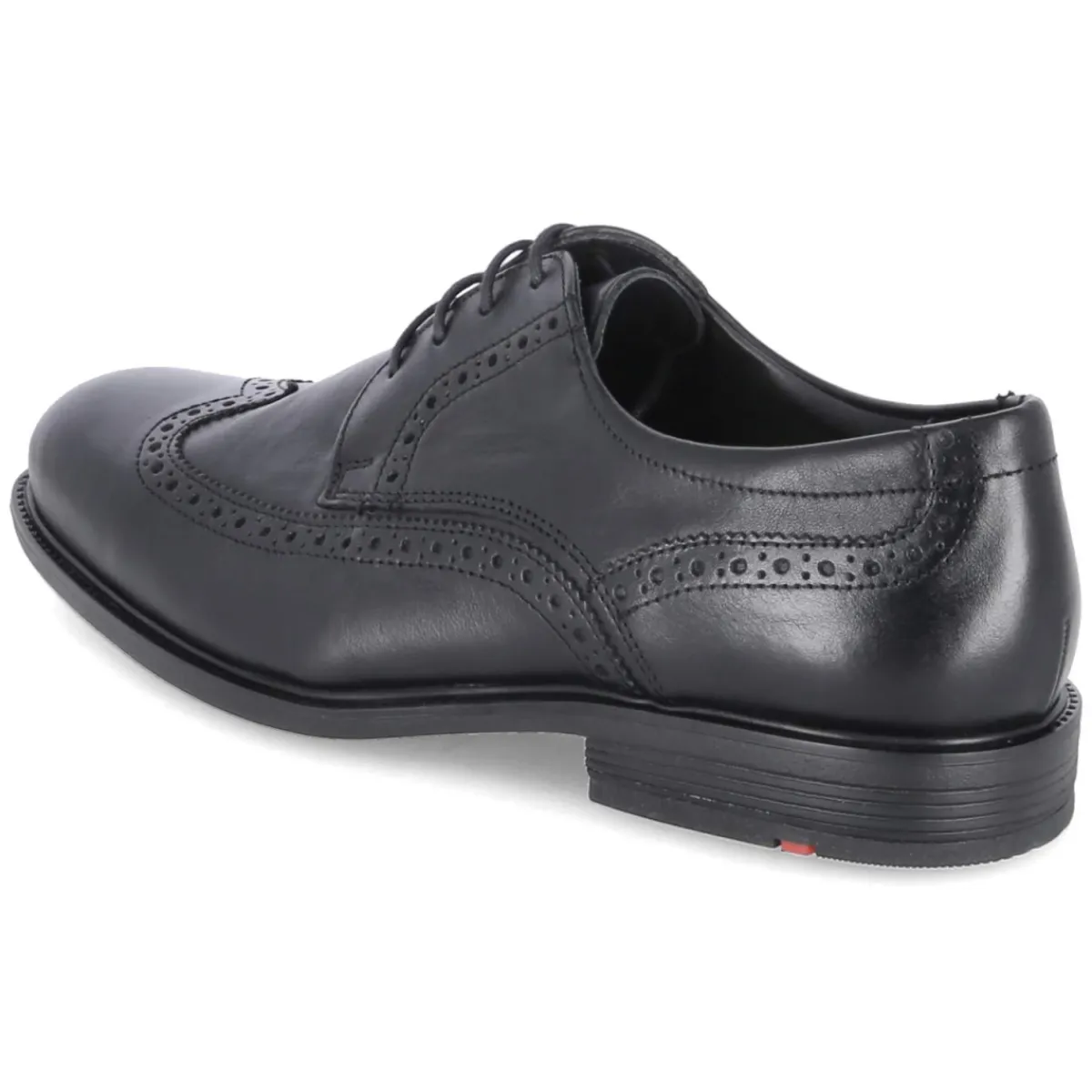 Der LLOYD Halbschuh KALEB verbindet klassisches Design mit durchdachter Funktion für den Alltag im Business und darüber hinaus. Glattes, langlebiges Echtleder in tiefem Schwarz und das feine Budapester Lochmuster verleihen dem gemusterten Derbyschnürer zeitlose Eleganz. Komfort entsteht durch die runde Spitze, den leicht gepolsterten Einstiegsbereich und das gepolsterte Wechselfußbett, das bei Bedarf durch eigene Einlagen ersetzt werden kann. Eine Lederdecksohle sorgt für ein ausgeglichenes Fußklima. Der 3 cm hohe Blockabsatz bietet Stabilität, während die flexible, rutschhemmende Laufsohle mit leichtem Profil sicheren Halt gibt. Verstärkte Fersen- und Zehenbereiche erhöhen die Formbeständigkeit und Langlebigkeit. Größenhinweis: fällt normal aus. Modetipp: Zu einem anthrazitfarbenen Anzug und weißem Oxford-Hemd zeigt KALEB souveräne Präsenz; ein schwarzer Ledergürtel im gleichen Finish und dezent gemusterte Wollsocken vollenden den Look.