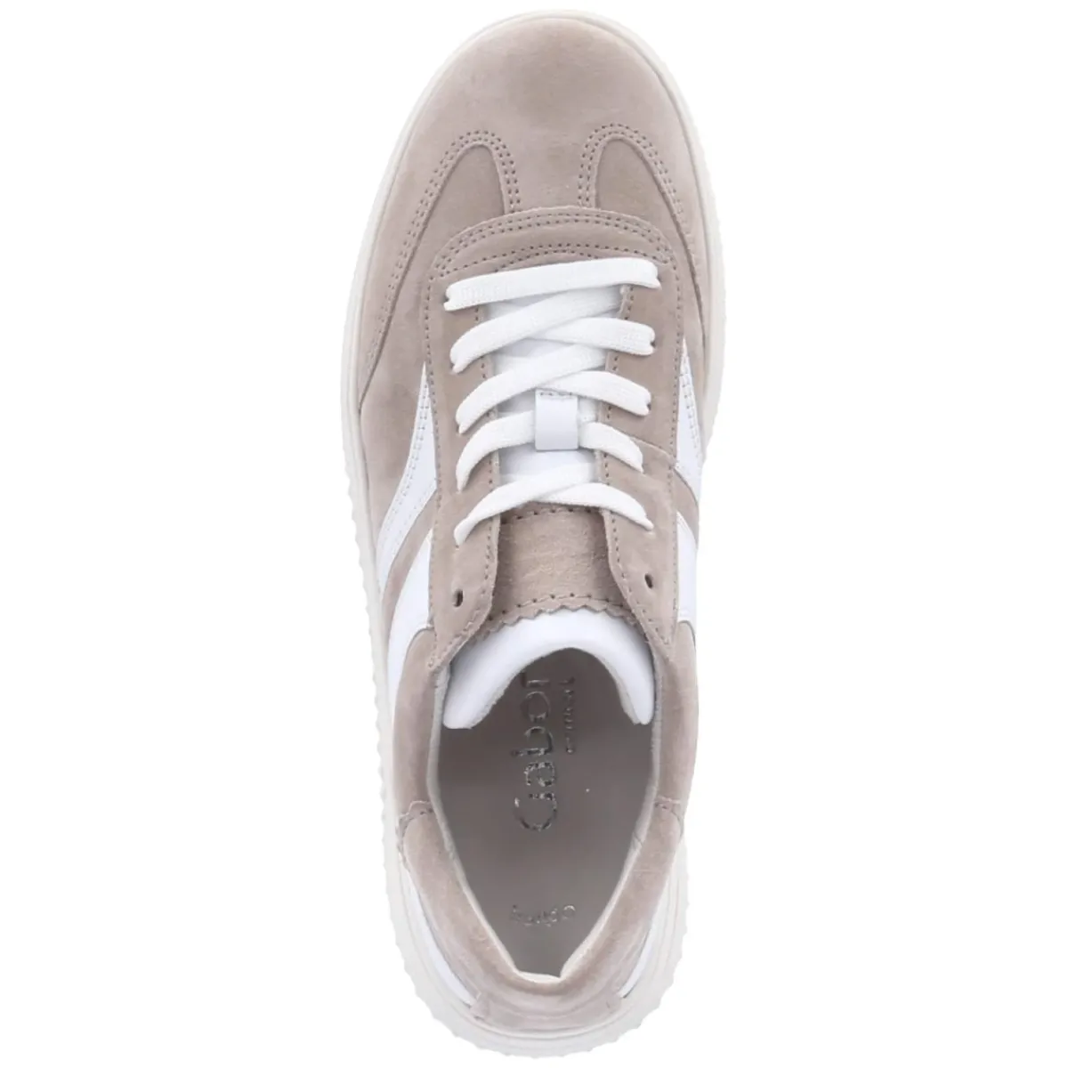 Der Low Sneaker von Gabor in sanftem Beige setzt auf langlebiges Echtleder und ein Obermaterial aus geschmeidigem Rauleder. Die runde Schuhspitze und Weite K schenken angenehmen Platz, während die Schnürung sicheren Halt verleiht. Mit gepolstertem Lederfußbett zum Herausnehmen, komfortablem Wechselfußbett und rutschhemmender Laufsohle ist entspanntes Gehen garantiert. Der verstärkte Fersen- und Zehenbereich erhöht die Robustheit, das relaxt leichte Tragegefühl überzeugt im Alltag. Rosa und weiße Highlights bringen einen frischen Akzent, der dem minimalistischen Design einen femininen Twist gibt. Dank normal ausfallender Passform ist die Größenwahl unkompliziert. Modetipp: Zu cremefarbener Chino, lockerem Strick und einer Crossbody-Bag entsteht ein toniges City-Outfit; zarte Goldschmuck-Details nehmen die warmen Beigetöne elegant auf.