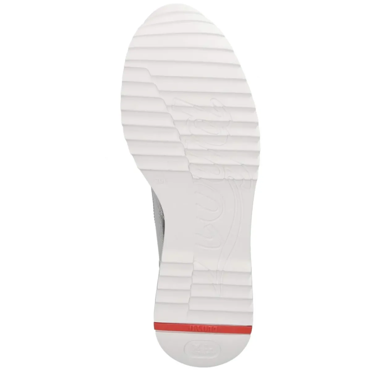 Der Low Sneaker MOMO MALA von LLoyd vereint urbane Eleganz mit lässigem Komfort. Das silberne Glattleder mit glänzender Oberfläche setzt ein modernes Statement, während die runde Schuhspitze und die dezenten Ziernähte den cleanen Look abrunden. Langlebiges Echtleder trifft auf ein weich gepolstertes Fußbett und einen leicht gepolsterten Einstieg, der gemeinsam mit der flexiblen, extra leichten Laufsohle für angenehmes Gehen sorgt. Der verstärkte Zehen- und Fersenbereich erhöht die Formstabilität, Schnürsenkel garantieren sicheren Halt, der Zierreißverschluss verleiht eine markante Note. Die Decksohle aus Leder-Textil-Mix unterstützt ein ausgewogenes Fußklima. Fällt normal aus und passt dadurch zuverlässig zur gewohnten Größe. Modetipp: Silber harmoniert besonders mit gedeckten Neutraltönen – zu Wide-Leg-Jeans in Creme und einem grauen Stricktop entsteht ein edler Day-to-Night-Look.