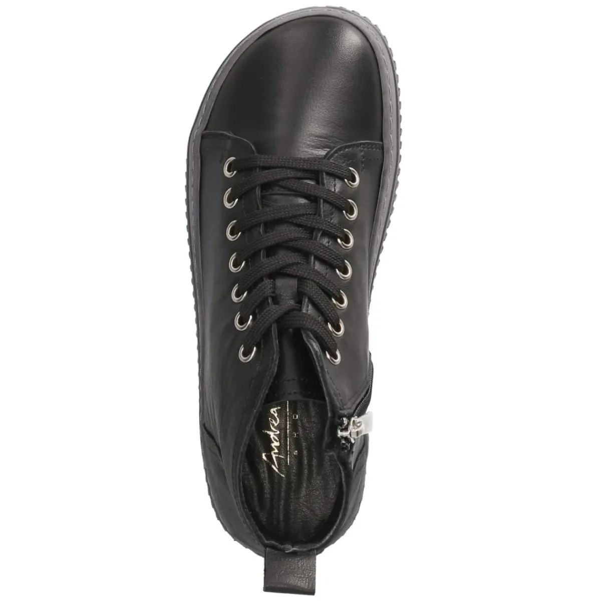 Zeitlos und komfortabel präsentieren sich die schwarzen Schnürstiefeletten von Andrea Conti als vielseitiger Begleiter für den Alltag. Das Obermaterial aus langlebigem Glattleder überzeugt mit dezenten Ziernähten, während die runde Spitze dem Look eine feminine Note verleiht. Schnürung und seitlicher Reißverschluss ermöglichen bequemen Einstieg und individuelle Anpassung; eine Anziehlasche erleichtert das Hineinschlüpfen zusätzlich. Die hautfreundliche Lederdecksohle und das herausnehmbare Wechselfußbett bieten angenehme Dämpfung und die Option für eigene Einlagen. Stabilität gibt die verstärkte Ferse, Griffigkeit die flexible, rutschhemmende Laufsohle. Der Schnitt fällt normal aus und eignet sich damit für die übliche Größe. Modetipp: Für einen modernen City-Look zu Cropped-Jeans, einem weichen Strickpullover und einem geradlinigen Wollmantel kombinieren; edler Akzent mit einer schmalen Leder-Umhängetasche.