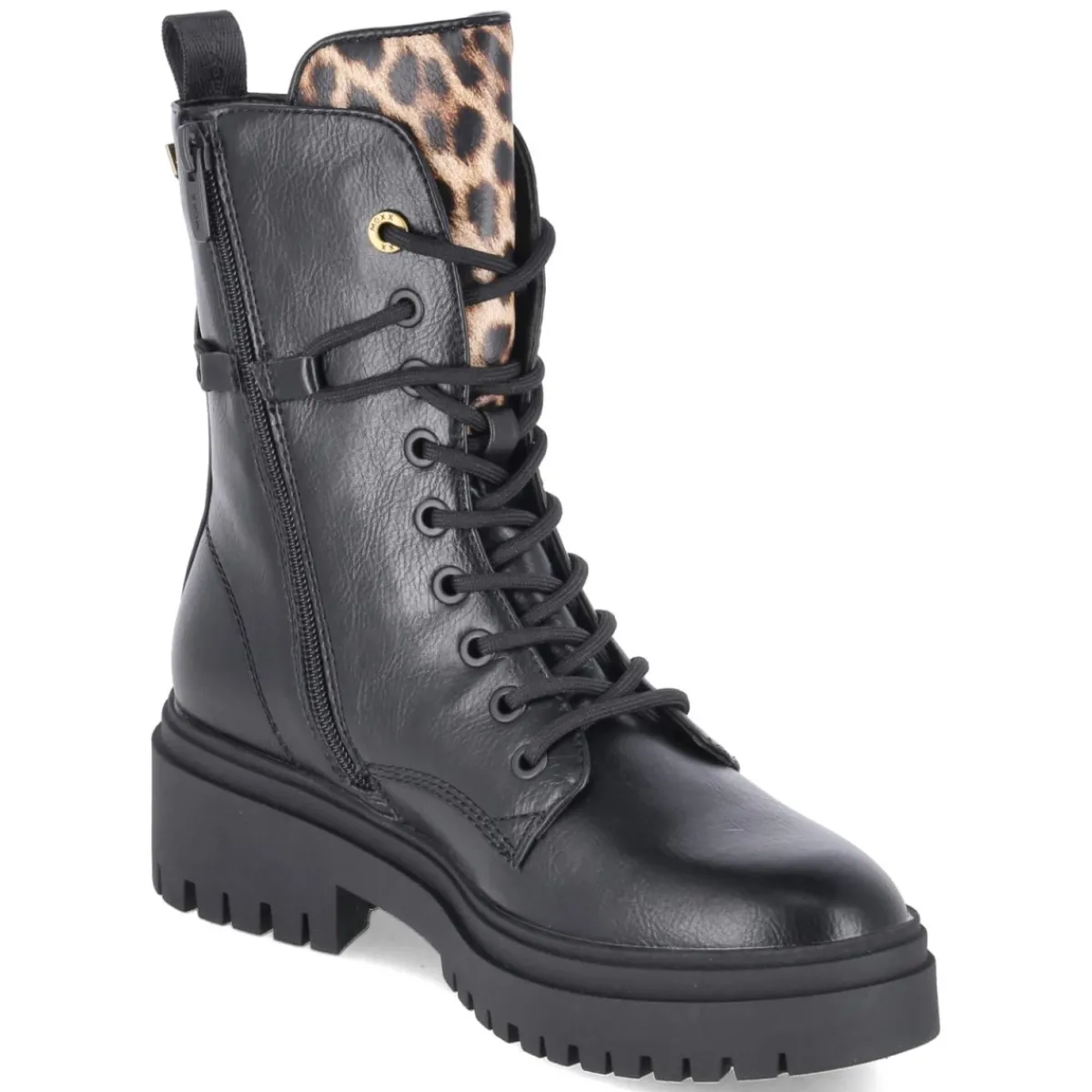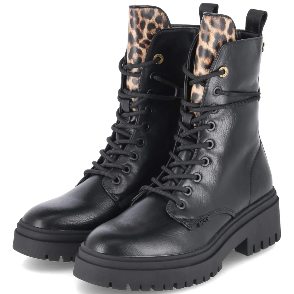 Die Schnürstiefeletten PRETTY KETO von Mexx verbinden urbanen Charme mit alltagstauglichem Komfort. Das schwarze Obermaterial aus Synthetik zeigt sich pflegeleicht und sorgt zusammen mit dem unkomplizierten Einstieg über Schnürsenkel und Reißverschluss für entspannte Momente beim An- und Ausziehen. Ein leichter Futtereinsatz wärmt an kühlen Tagen, während der 5-cm-Blockabsatz stabilen Stand und eine feminine Silhouette verleiht. Die runde Schuhspitze, der verstärkte Fersenbereich und die Anziehlasche unterstützen ein angenehmes Tragegefühl. Ein dezentes Leopardenmuster auf der Zunge setzt einen modischen Akzent, ohne aufdringlich zu wirken. Die Passform fällt normal aus und richtet sich an erwachsene Trendsetterinnen, die Variabilität schätzen. Modetipp: Besonders stimmig wirkt das Modell zu Cropped-Denim, grob gestrickter Cardigan und einem cleanen Wollmantel; für einen eleganten Twist empfiehlt sich ein fließender Midirock mit blickdichter Strumpfhose.