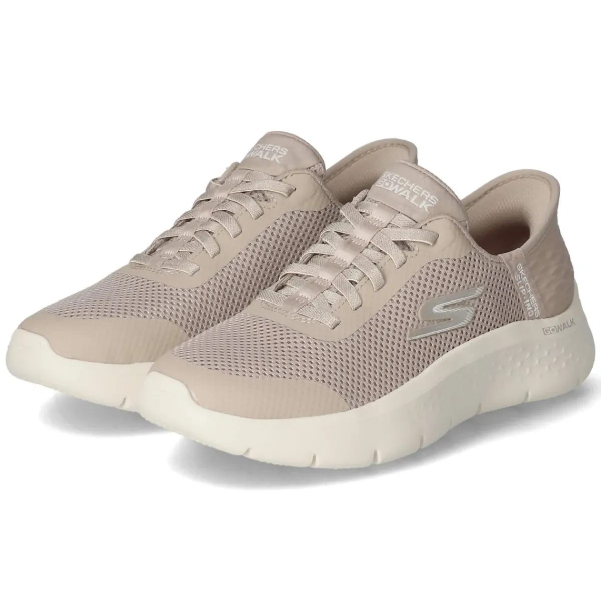 Der Skechers Slip Ins Sneaker GO WALK FLEX interpretiert lässige Athleisure für Damen mit spürbarem Komfortanspruch. Das weiche Textil-Obermaterial umschließt den Fuß angenehm, die runde Schuhspitze bietet entspanntes Platzgefühl und die textile Decksohle unterstützt ein natürliches Abrollen. Das Highlight ist die beste Memory-Foam-Fußbettung, die jeden Schritt sanft abfedert und auch bei längeren Wegen für Entlastung sorgt. Dank klassischer Schnürung lässt sich der Sitz individuell anpassen, während der Größenhinweis „fällt normal aus“ das Finden der passenden Größe erleichtert. Praktisch im Alltag: Der Sneaker ist waschmaschinengeeignet und wirkt so lange frisch. Das zeitlose Beige eröffnet vielseitige Styling-Optionen und harmoniert mühelos mit Casual- und Smart-Casual-Looks. Modetipp: Ton-in-Ton mit einer beigen Leinenhose und einem cremefarbenen Stricktop kombinieren, dazu filigraner Goldschmuck für einen edel-sportiven Auftritt.