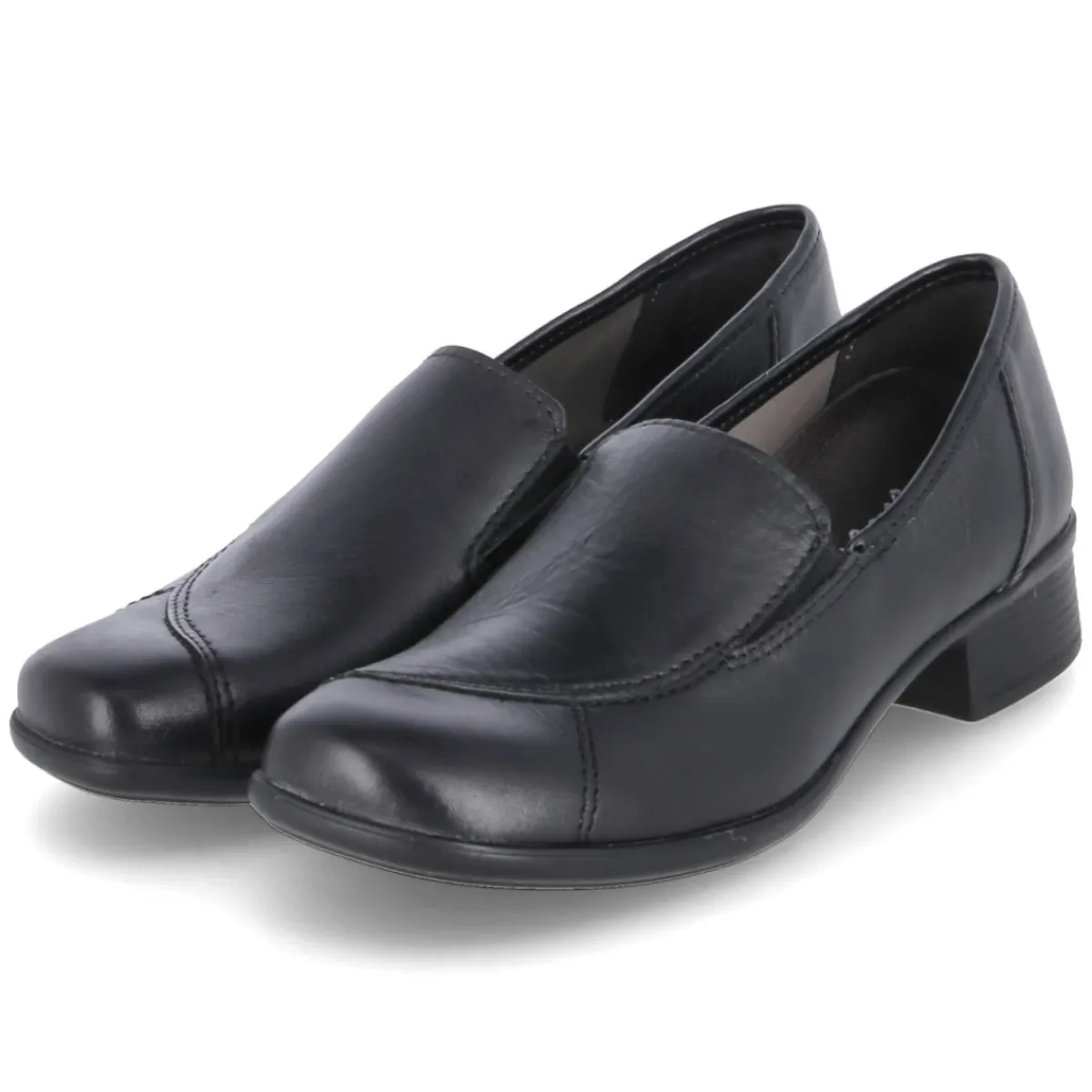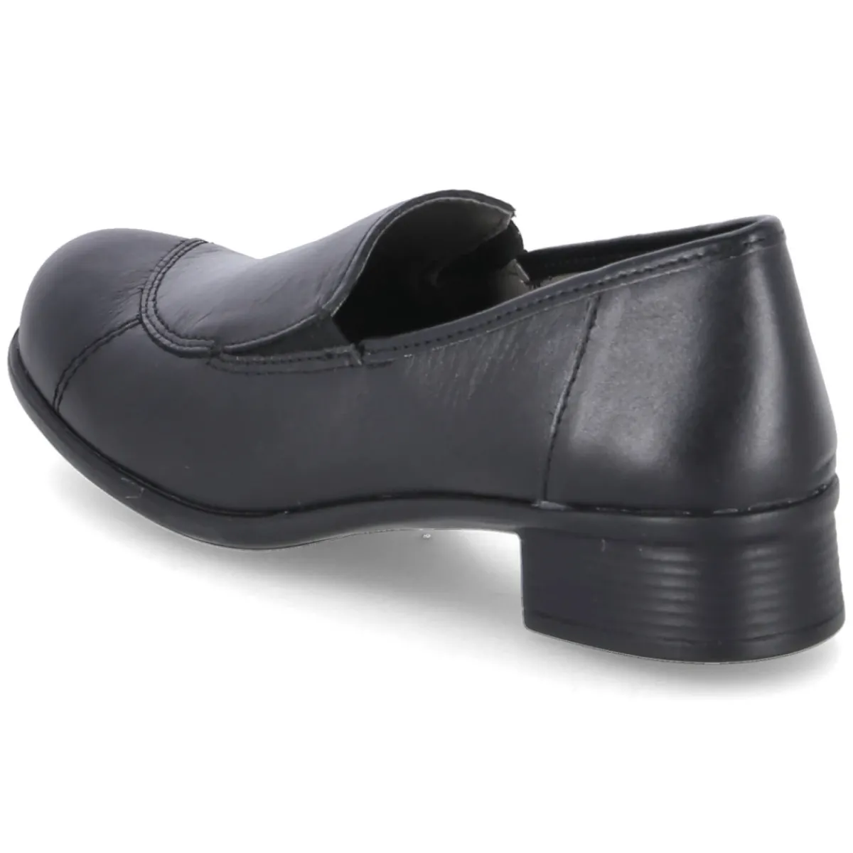 Beliana präsentiert mit dem Slipper STEFFI 06 einen zeitlosen Begleiter für Damen, der Komfort und Eleganz mühelos verbindet. Das schwarze Glattleder zeigt sich langlebig und formbeständig, dekorative Nähte setzen subtile Akzente. Als relaxtes Leichtgewicht entlastet das Modell den Fuß den ganzen Tag. Der 3 cm hohe Blockabsatz sorgt für sicheren Stand, die runde Spitze bietet Zehenfreiheit. Seitliche Elastikeinsätze erleichtern den Einstieg und geben Halt, der verstärkte Fersenbereich stabilisiert zusätzlich. Eine leicht gepolsterte, herausnehmbare Lederdecksohle erhöht den Tragekomfort und lässt Raum für eigene Einlagen. Die flexible, griffige Laufsohle macht Stadtspaziergänge genauso angenehm wie den Büroalltag. Die Passform fällt normal aus. Modetipp: Zu gekürzten Zigarettenhosen und feiner Strickjacke entsteht ein moderner, cleaner Look, der von einer strukturierten Umhängetasche stilvoll abgerundet wird.