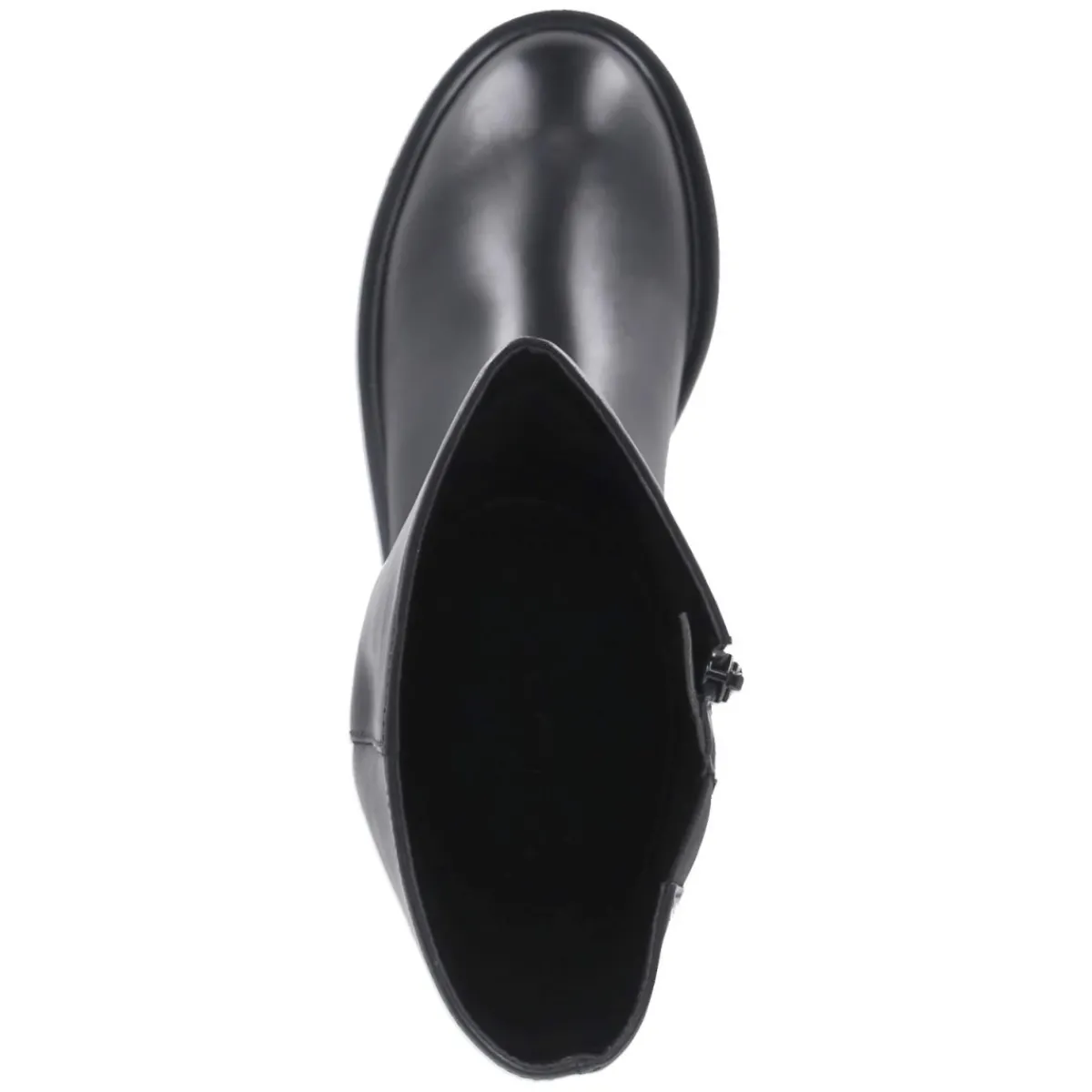 Der schwarze Damenstiefel von Gabor verbindet klare Linien mit hohem Tragekomfort. Weiches Glattleder verleiht eine edle Optik und überzeugt durch Langlebigkeit, während der rund gestaltete Zehenbereich und der stabile Blockabsatz von 4,5 cm ein entspanntes Laufgefühl fördern. Ein seitlicher Reißverschluss erleichtert den Einstieg, ergänzt durch einen Elastikeinsatz am oberen Schaft für mehr Flexibilität. Die Schaftweite M sowie ca. 39 cm Höhe und 34 cm Umfang sorgen für eine ausgewogene Silhouette. Ein gepolstertes Fußbett mit textiler Decksohle federt jeden Schritt, die verstärkte Ferse gibt zuverlässigen Halt. Das relaxt leichte Design fällt normal aus und eignet sich für den Alltag ebenso wie für elegante Auftritte. Modetipp: Zu Strickkleid und Wollmantel entsteht ein cleaner, urbaner Look.