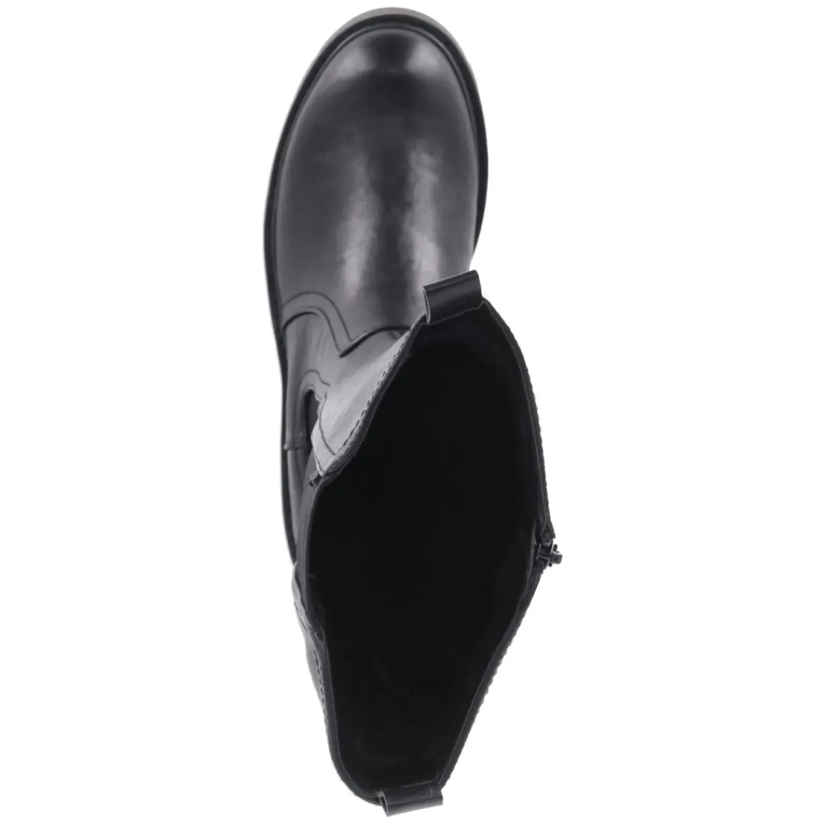 Der schwarze Damenstiefel von Rieker verbindet urbanes Chelsea-Design mit alltagstauglichem Komfort. Das pflegeleichte Synthetik-Obermaterial und die runde Spitze sorgen für eine zeitlose Optik, während der seitliche Elastikeinsatz am Schaft und zwei Anziehlaschen das Hineinschlüpfen erleichtern. Ein praktischer Reißverschluss bietet zusätzlichen Komfort beim An- und Ausziehen. Der 4 cm hohe Blockabsatz gibt Halt, die rutschfeste Profilsohle sorgt für sicheren Tritt. Ein leichtes Fleecefutter mit textiler Decksohle wärmt dezent an kühlen Tagen, ohne aufzutragen. Mit einer Schafthöhe und -weite von jeweils ca. 40 cm sitzt das Modell angenehm und fällt größengetreu aus. Modetipp: Zu einem fließenden Midikleid und einem strukturierten Wollmantel entsteht ein moderner City-Look, der mit einer eleganten Crossbody-Bag lässig abgerundet wird.