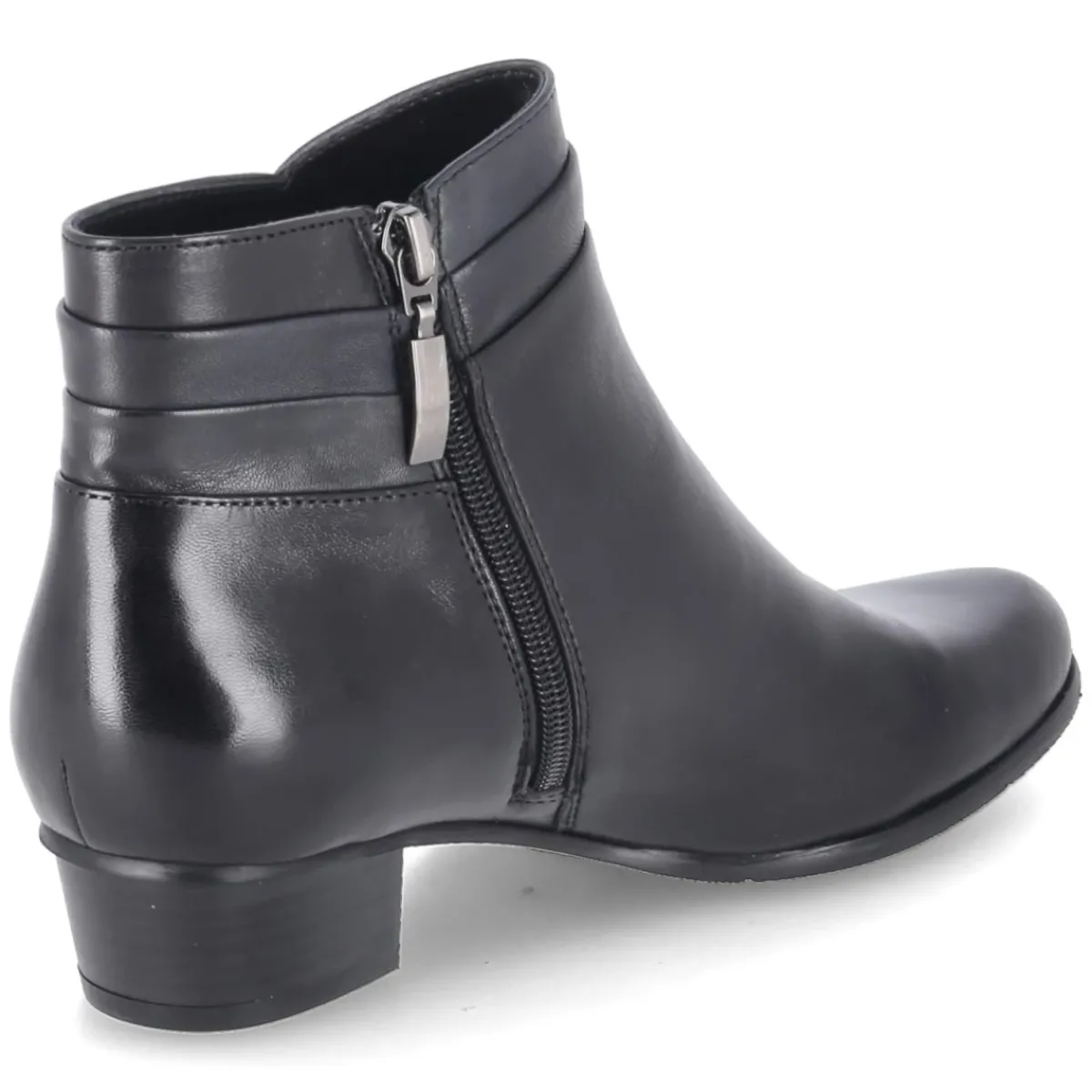 Die Damen-Stiefeletten von Kaerlek verbinden klare Linien mit funktionalen Details. Glattes, langlebiges Echtleder in tiefem Schwarz trifft auf eine runde Schuhspitze und einen stabilen 4-cm-Blockabsatz mit dezent kubanischer Anmutung. Der seitliche Reißverschluss erleichtert das Anziehen, während der Schaft mit überlagernden Elementen dem klassischen Design eine moderne Tiefe verleiht. Innen sorgt ein leichtes Fleecefutter für behagliche Wärme an kühlen Tagen, die Leder-Textil-Decksohle unterstützt ein angenehmes Fußklima. Die flexible, griffige Laufsohle gibt Halt auf urbanem Terrain, das relaxtes Leichtgewicht macht jeden Schritt mühelos. Der Fit fällt normal aus und bleibt den ganzen Tag komfortabel. Modetipp: Mit Midirock aus Satin und einem strukturierten Wollblazer entsteht ein eleganter Kontrast; alternativ verleiht eine Cropped-Denim und ein Kaschmirpullover dem Look lässige Klasse.