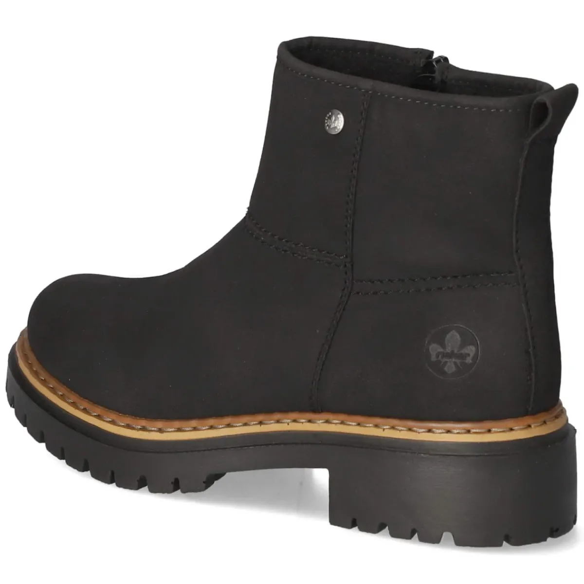 Diese Rieker Stiefeletten vereinen dezente Eleganz mit alltagstauglichem Komfort. Das schwarze Obermaterial aus robuster Synthetik zeigt sich pflegeleicht und formstabil, während das warme Futter an kalten Tagen für behagliche Temperaturen sorgt. Der praktische Reißverschluss erleichtert das An- und Ausziehen und hält den Schaft schön nah am Fuß. Mit 4,5 cm bietet der Blockabsatz stabilen Stand und eine angenehme Höhe für lange Wege, die runde Schuhspitze gewährt bequemen Zehenraum. Die textile Decksohle schmiegt sich sanft an und die Passform fällt normal aus, ideal für den gewohnten Größengriff. So entsteht ein zuverlässiger Begleiter für Büro, Stadtbummel und winterliche Treffen. Modetipp: Zu einem Strickkleid in Melangetönen und blickdichter Strumpfhose getragen entsteht ein harmonischer Look, alternativ setzt eine verkürzte Straight-Jeans den Schaft dezent in Szene.