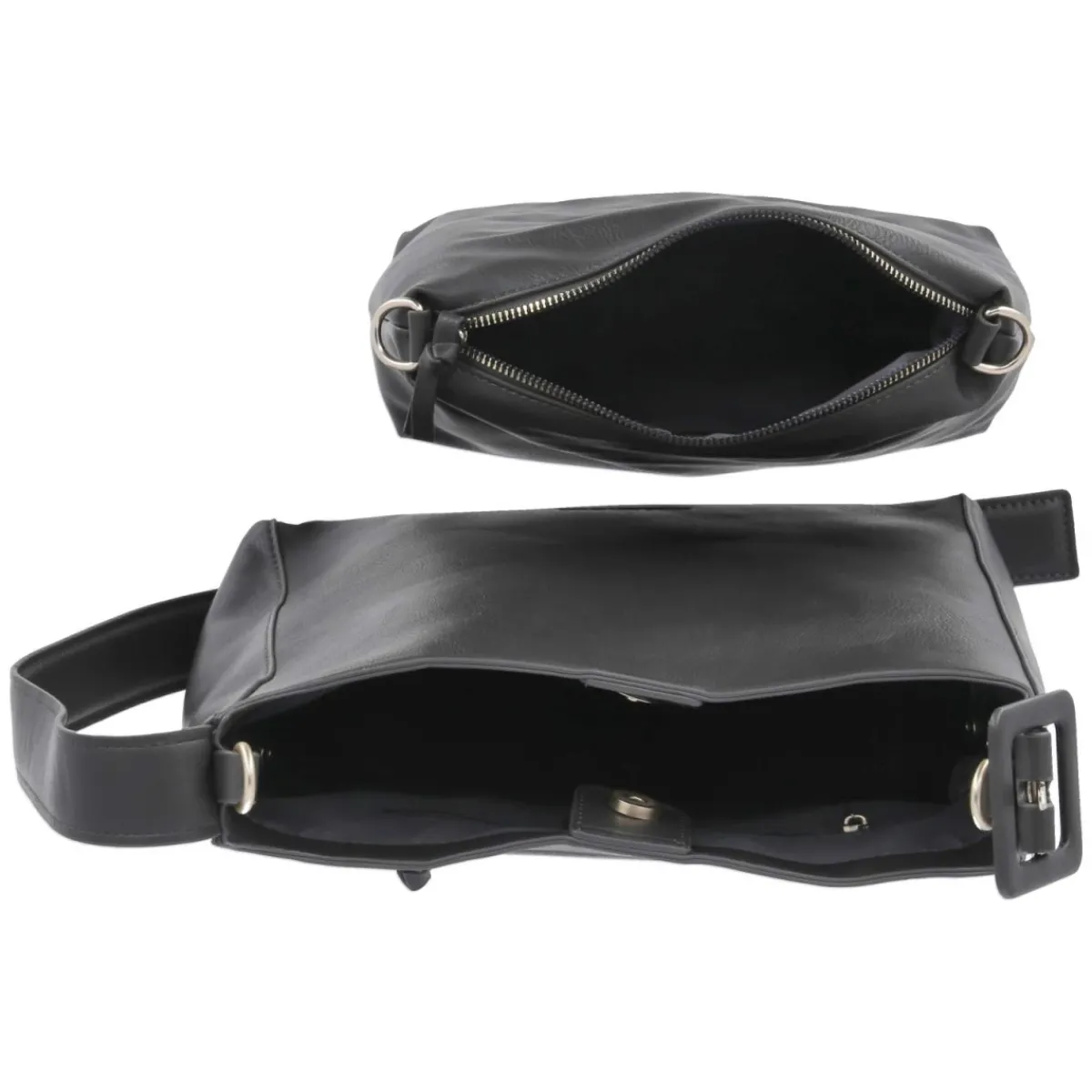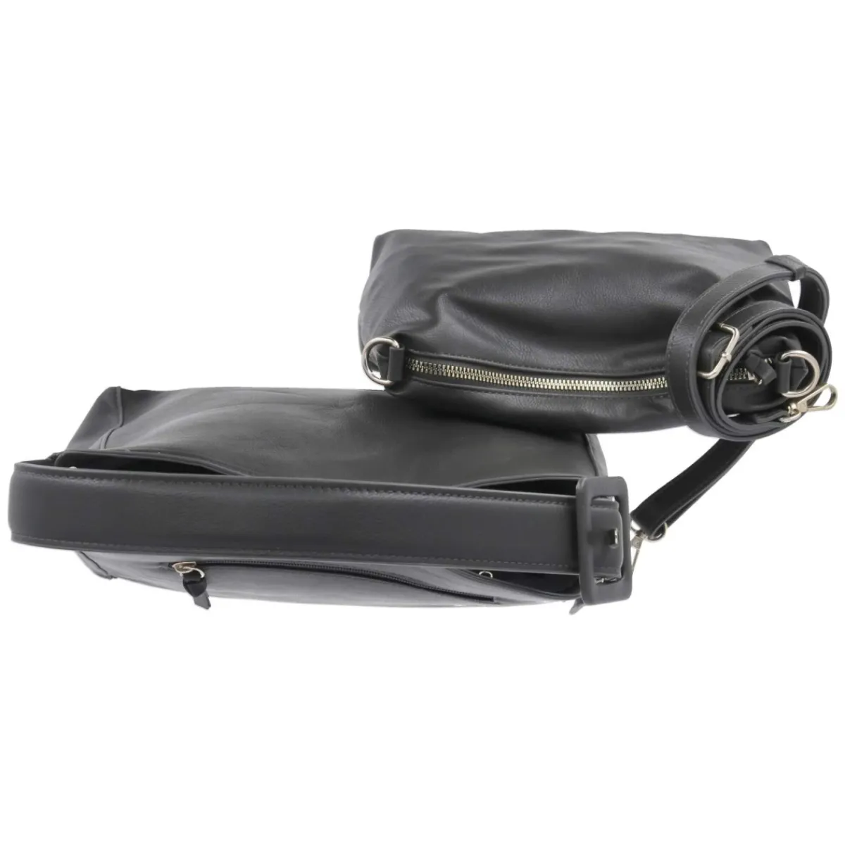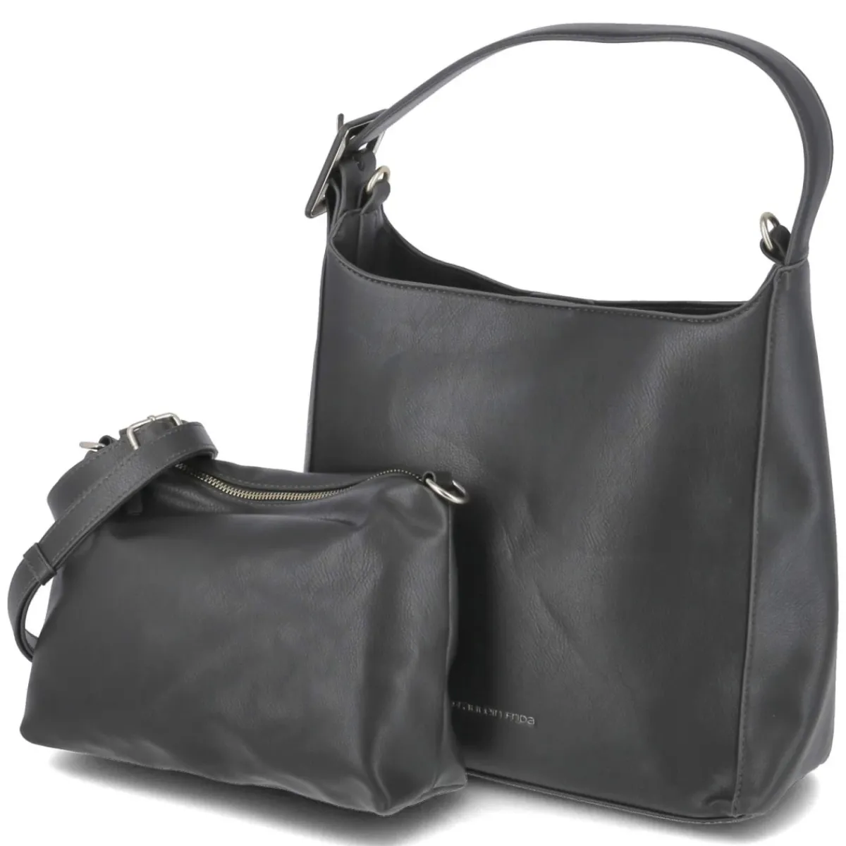 Dieses Taschenset in elegantem Grau vereint klare Linien mit praktischer Alltagstauglichkeit. Die große Tasche misst ca. 26 x 28 x 11 cm, fasst rund 8 Liter und schließt zuverlässig per Magnetverschluss. Innen sorgen ein Steckfach und ein Reißverschlussfach für Ordnung, während ein verstärkter Boden die Form stabil hält. Für variable Trageoptionen stehen ein verstellbarer, kurzer Schulterriemen von etwa 60 cm und ein langer, ebenfalls verstellbarer Gurt von ca. 130 cm bereit. Ergänzt wird das Set durch eine kleine Tasche in Dunkelgrau, die sich einknüpfen lässt oder solo getragen werden kann; sie verfügt über einen Reißverschluss und ein zusätzliches RV-Fach im Inneren. Ein Begleiter, der Organisation und Stil mühelos verbindet. Modetipp: Für einen modernen Ton-in-Ton-Look zu grauen Wide-Leg-Hosen und weißen Sneakern kombinieren, Akzente setzt silberner Schmuck.