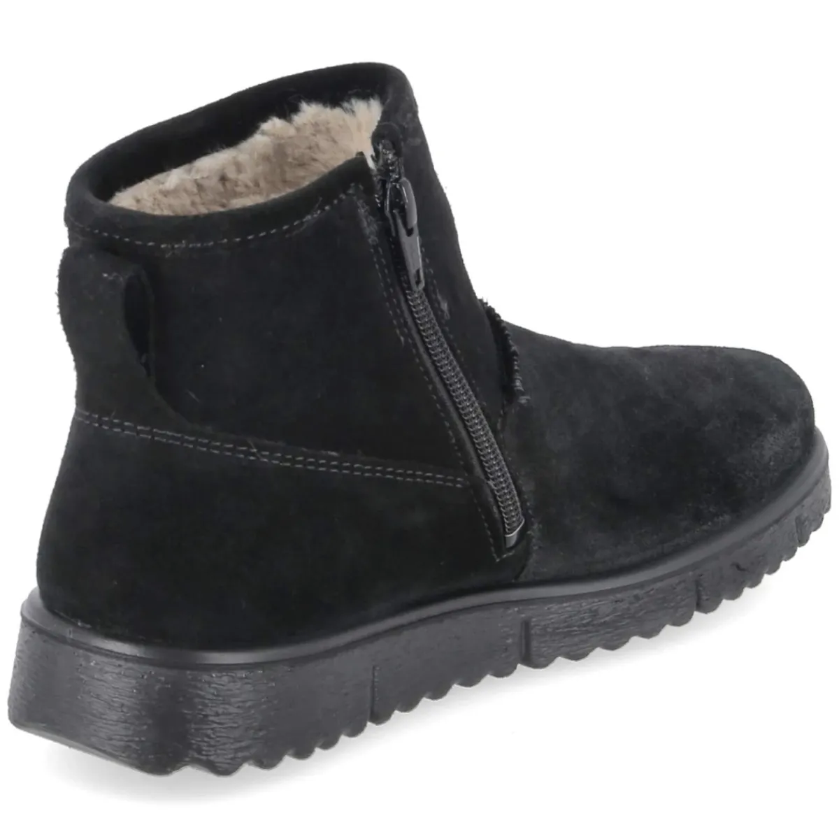 Winterboots LORA von Superfit bringen kleine Füße warm und trocken durch kalte Tage. Das schwarze Rauleder mit natürlichen, groben Nähten verleiht dem robusten Design eine zeitlose Note, während die Sympatex-Ausstattung und das wasserfeste, wasserabweisende Obermaterial vor Matsch und Schnee schützen. Innen sorgt kuscheliges Warmfutter für angenehme Temperaturen. Der bequeme Reißverschlußeinstieg erleichtert das An- und Ausziehen, die runde Spitze bietet Zehenfreiheit, und die verstärkte Ferse unterstützt bei jedem Schritt. Eine flexible Laufsohle mit griffigem Profil vermittelt Halt auf glatten Wegen. Das Wechselfußbett passt sich den Bedürfnissen wachsender Füße an, die Passform fällt normal aus. Modetipp: Zu Thermojeans, Funktionsparka und Strickmütze entsteht ein stimmiger Winterlook, den schwarze Handschuhe mit reflektierenden Details abrunden.