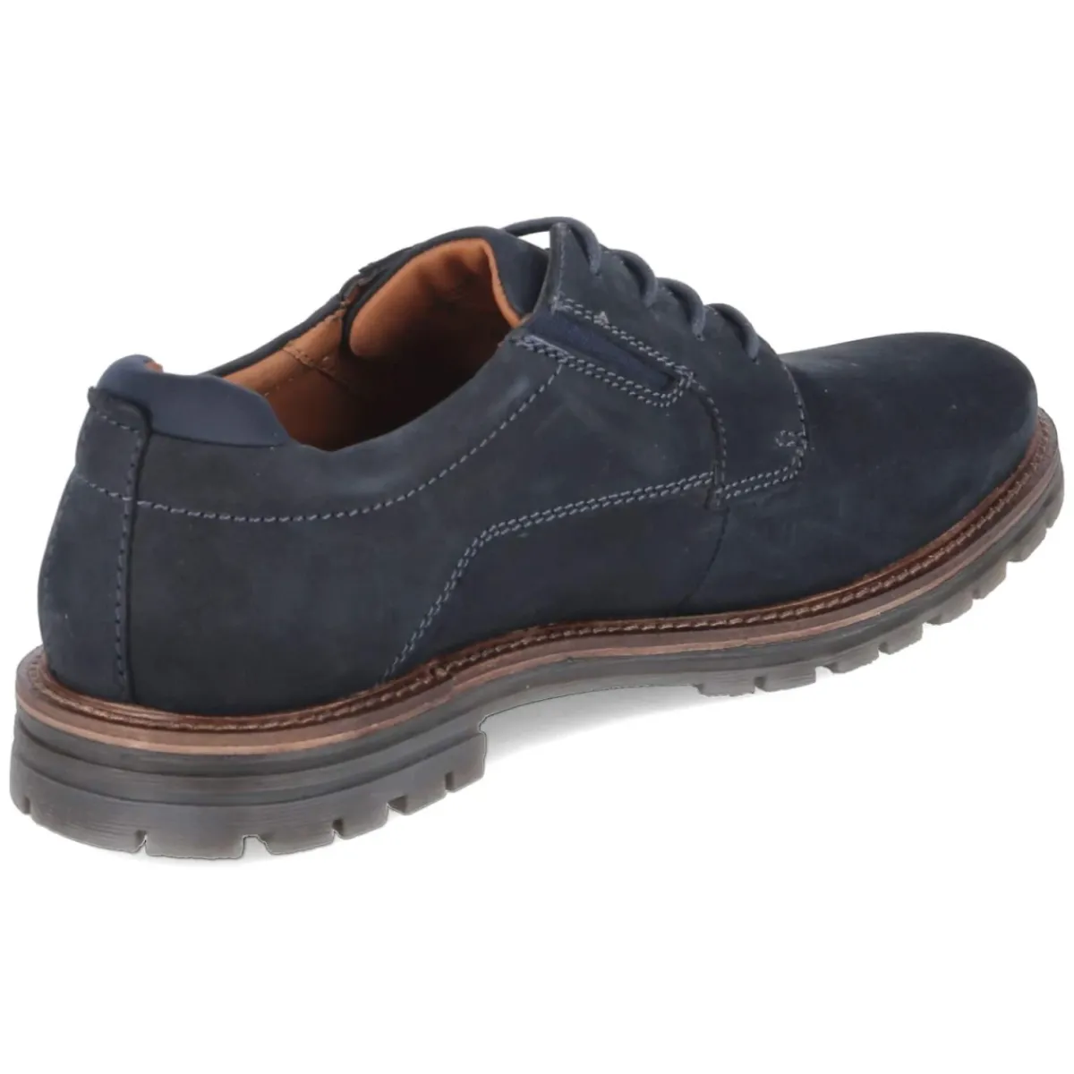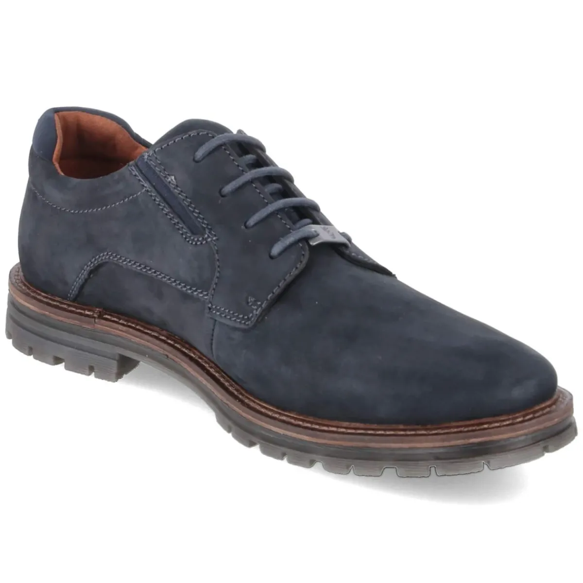 Der Herren-Halbschuh von Salamander zeigt sich in sattem Dunkelblau und verbindet klassisches Design mit funktionalem Komfort. Weiches Rauleder formt eine runde Spitze und eine elegante Schnürung, während der 3 cm hohe Blockabsatz sicheren Stand bietet. Die flexible Laufsohle mit griffigem Profil sorgt für Halt auf verschiedensten Untergründen. Eine Decksohle aus Leder und das komfortable, herausnehmbare Wechselfußbett unterstützen den Fuß den ganzen Tag. Seitliche Elastikeinsätze am Spann erleichtern das Abrollen, verstärkte Ferse und leicht gepolsterter Einstieg erhöhen die Stabilität. Die Passform fällt normal aus. Langlebiges Echtleder unterstreicht die Wertigkeit und Alltagstauglichkeit. Modetipp: Besonders stimmig zu einer schmalen Chino in Sand und einem Feinstrick in Marine; für den Business-Casual-Look mit Hemd und unstrukturiertem Sakko kombinieren.