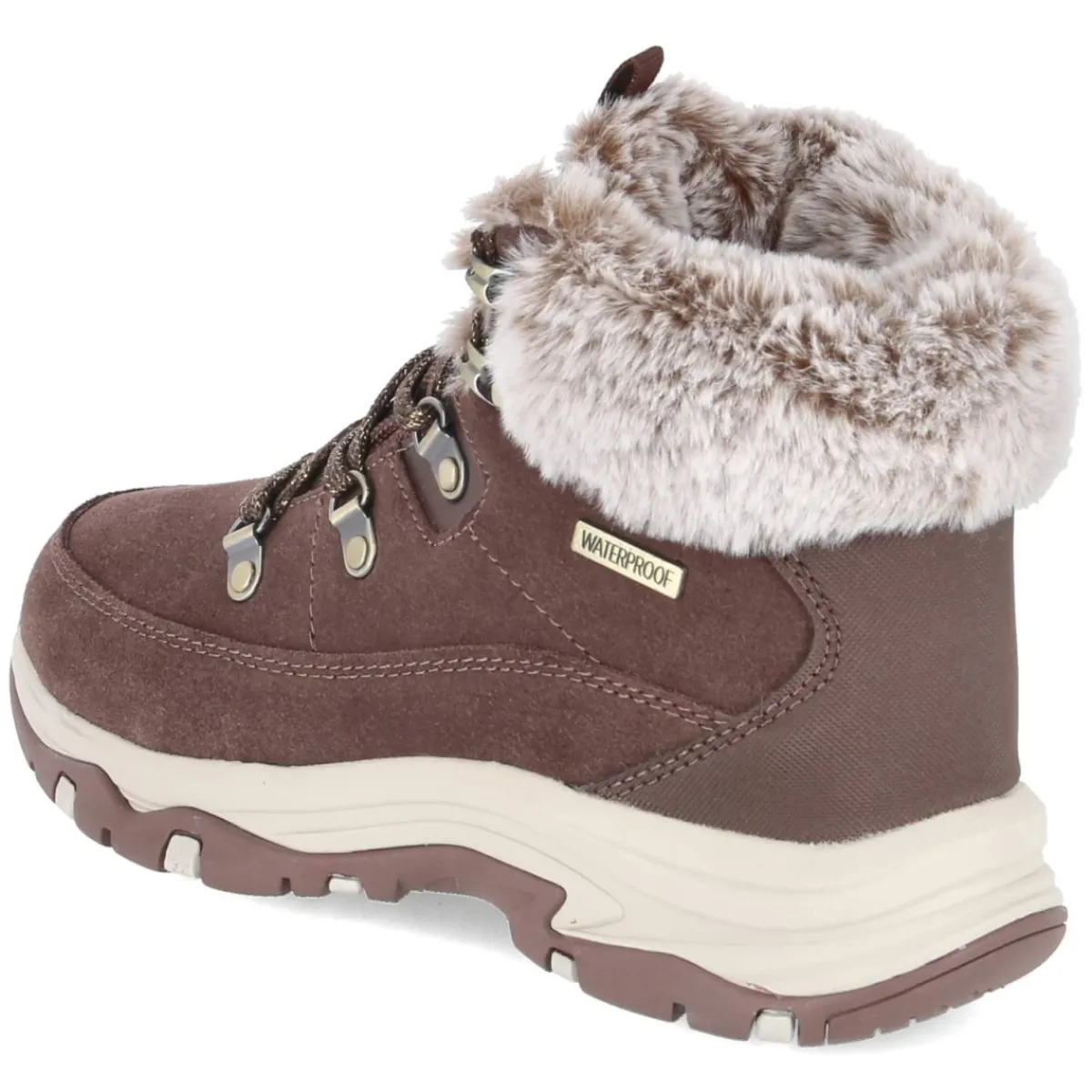 Skechers TREGO SNOW WORRIES vereint robusten Outdoor-Charakter mit komfortbetonter Ausstattung. Das Obermaterial aus Leder und Synthetik zeigt einen natürlichen Look in warmem Braun, während die wasserfeste, atmungsaktive Verarbeitung und das schützende Warmfutter zuverlässigen Wetterschutz bieten. Ein bestes Memory-Foam-Fußbett mit textiler Decksohle umschließt den Fuß weich und unterstützt bei langen Wegen. Der gepolsterte Einstieg mit Kunstfellkragen, die runde Schuhspitze sowie der normal ausfallende Leisten sichern hohen Tragekomfort. Für Stabilität sorgen verstärkter Fersenbereich und Fußrahmen, Anziehlasche erleichtert den Einstieg. Die flexible, rutschfeste Profilsohle greift sicher auf winterlichen Untergründen, der Schnürverschluss passt die Passform präzise an. Modetipp: In Kombination mit Wollmantel in Camel und Indigo-Jeans entsteht ein stimmiger City-Winter-Look.