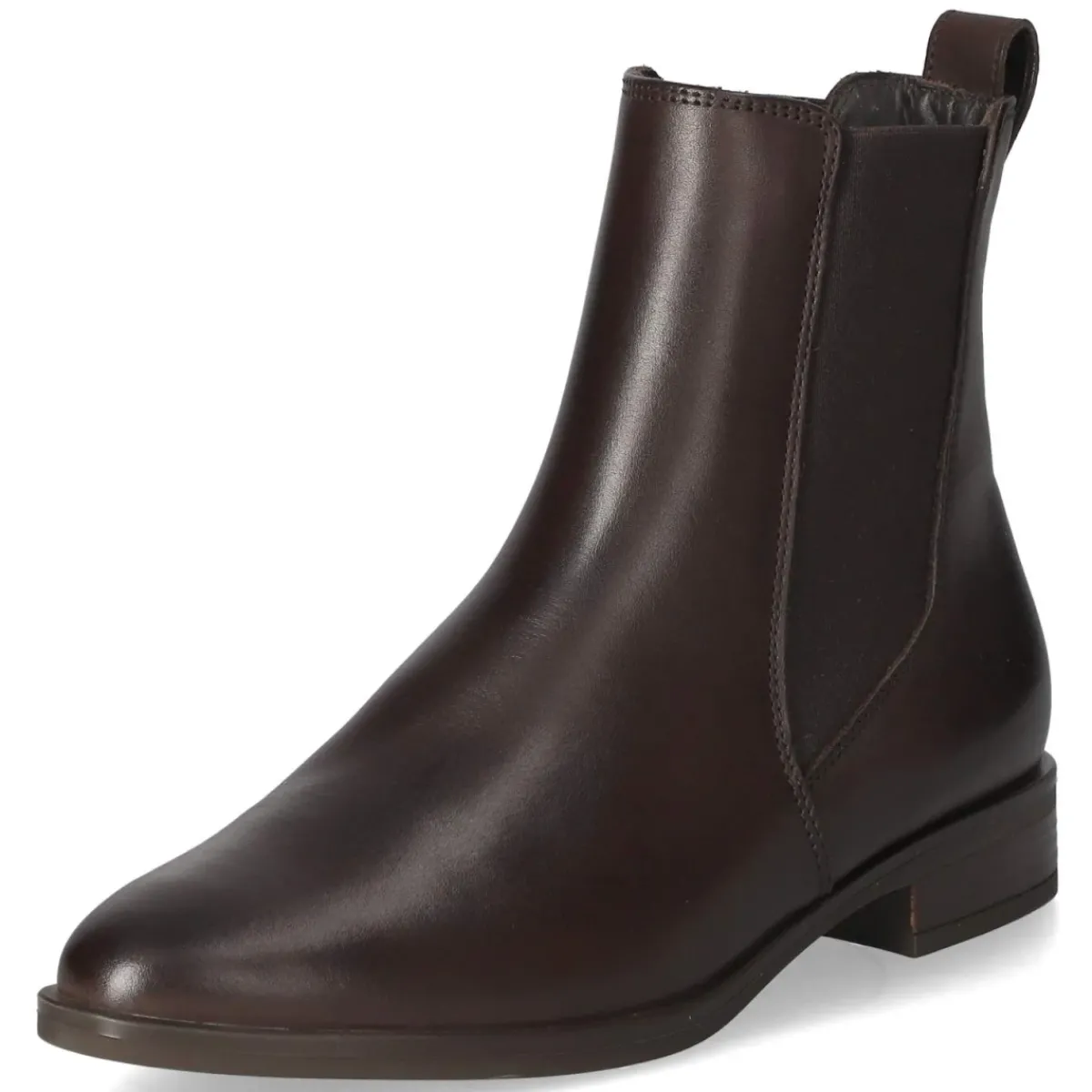 Zeitloser Auftritt mit Charakter: Die Chelsea Boots von Paul Green in sattem Braun verbinden klare Linien mit hochwertiger Verarbeitung. Robustes Echtleder und ein Obermaterial-Mix aus Leder und Textil umschließen den Fuß angenehm, die runde Spitze lässt ausreichend Raum. Dank Elastikeinsätzen und dem Verzicht auf einen Verschluss gelingt das Hineinschlüpfen mühelos, das weiche Lederfutter sorgt den ganzen Tag über für Komfort. Eine verstärkte Ferse stabilisiert die Silhouette, während die flexible, rutschfeste Laufsohle sicheren Halt auf unterschiedlichen Untergründen bietet. Die Anziehlasche mit goldenem Markendetail setzt einen dezenten Akzent. Der Schnitt fällt normal aus und macht die Boots zur verlässlichen Wahl für verschiedenste Anlässe. Modetipp: Besonders stimmig zu Cropped-Jeans und Wollmantel oder als Ausgleich zu fließenden Midikleidern.