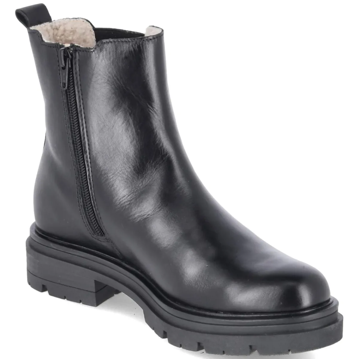 Die Chelsea Boots von Fräulein Frida verbinden zeitlose Eleganz mit zuverlässigem Komfort. Das schwarze Glattleder zeigt eine fein polierte Oberfläche, die dank langlebigem Echtleder formstabil bleibt und mit jedem Tragen an Charakter gewinnt. Ein 4 cm hoher Blockabsatz sorgt für angenehme Höhe und sicheren Stand, unterstützt von einer rutschhemmenden Profilsohle. Der seitliche Elastikeinsatz am Spann ermöglicht flexible Bewegungen, während der Reißverschluss das An- und Ausziehen erleichtert. Eine weiche Fütterung im Schaft, die Lederdecksohle sowie der verstärkte Fersenbereich erhöhen den Tragekomfort im Alltag. Die abgerundete Schuhspitze verleiht dem Design eine feminine Note, die Anziehlasche setzt einen funktionalen Akzent. Größenhinweis: fällt normal aus. Modetipp: zu Cropped-Jeans und Oversize-Blazer für einen modernen City-Look, oder mit Midikleid und Strickmantel für einen eleganten Kontrast.