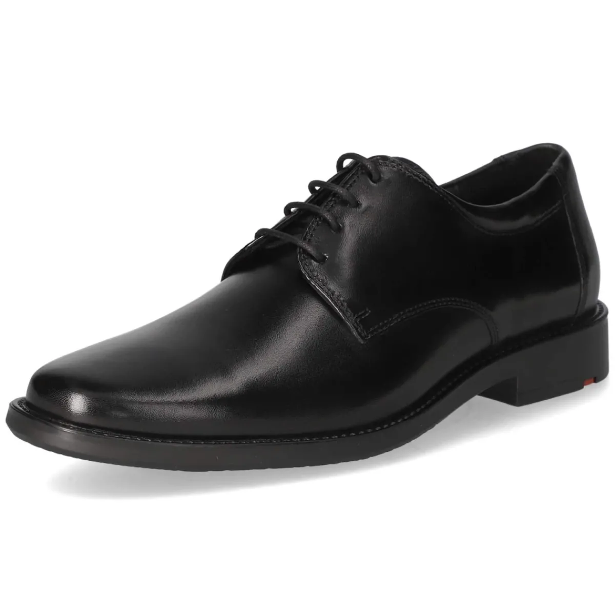 Der Halbschuh CORE 110 von LLoyd setzt auf zeitlose Eleganz und wohldurchdachten Komfort. Glattes, atmungsaktives Echtleder in tiefem Schwarz formt das Obermaterial und umschließt den Fuß mit angenehm weichem Halt. Die runde Spitze und der 2,5 cm hohe Blockabsatz sorgen für eine ausgewogene Silhouette, während die anpassbare Schnürung einen präzisen Sitz ermöglicht. Eine synthetische Decksohle und das gepolsterte Fußbett bieten gedämpften Auftritt, unterstützt von verstärkter Ferse, leicht gepolstertem Einstieg und einer flexiblen, rutschfesten Laufsohle für sicheren Halt auf verschiedenen Untergründen. Der Schnitt fällt normal aus und macht die Größenauswahl unkompliziert. Modetipp: Besonders überzeugend zu feiner Wollhose und Hemd, optional mit leichtem Trenchcoat für einen modernen Business-Charakter.