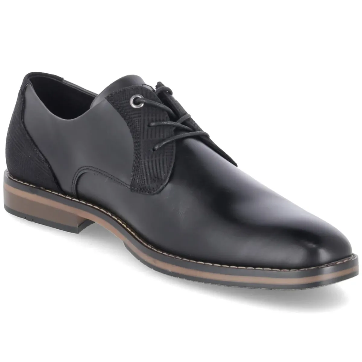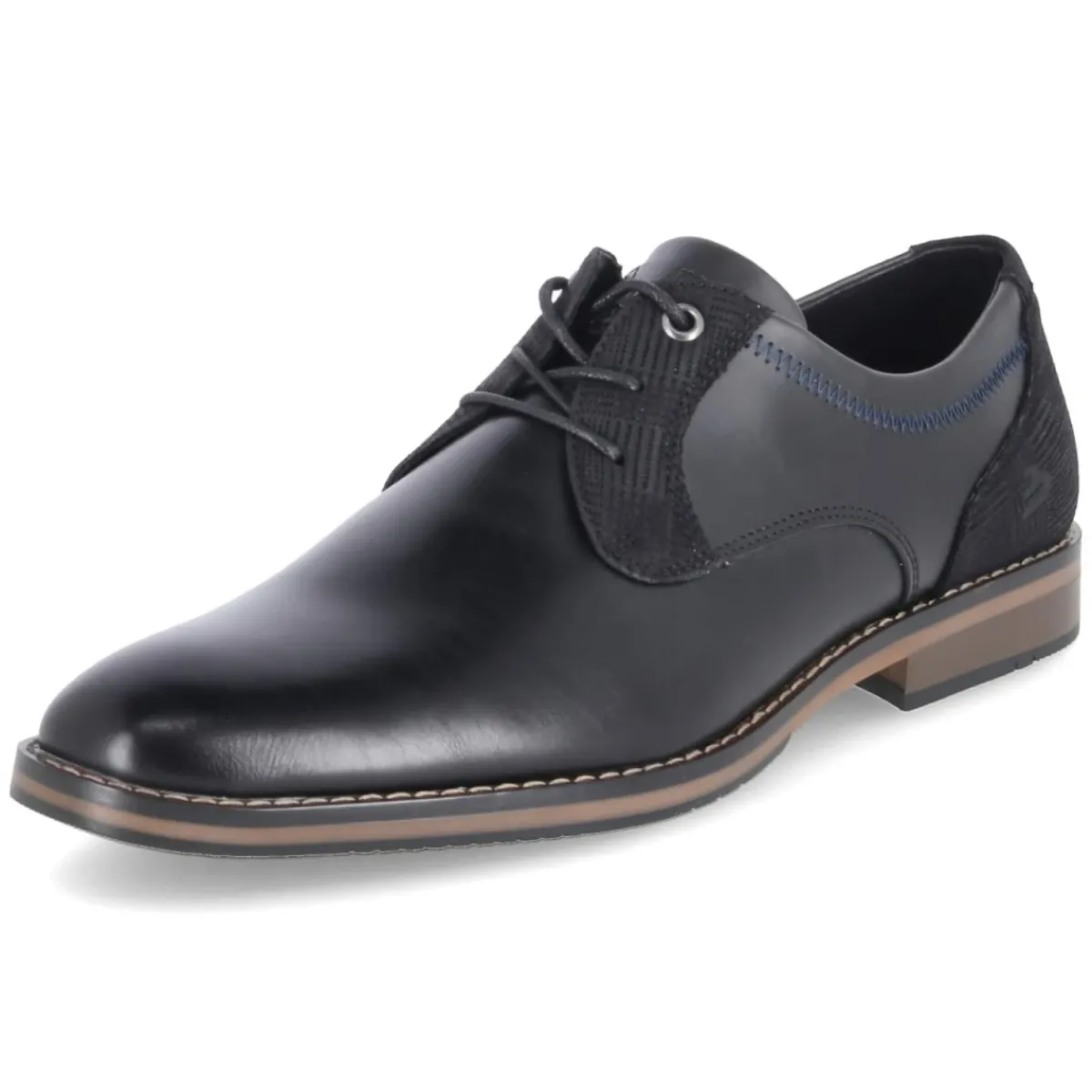 Der Halbschuh von Bullboxer vereint zeitlose Eleganz mit alltagstauglichem Komfort. Das schwarze Synthetik-Obermaterial zeigt eine pflegeleichte Oberfläche und ein klassisches Design, akzentuiert durch eine kurze Schnürung sowie eine verstärkte Ferse und ein verstärktes Blatt mit dezenter Karoprägung. Die runde Spitze verleiht dem Modell eine harmonische Linienführung. Innen sorgt eine weiche Decksohle aus Textil gemeinsam mit dem gepolsterten, herausnehmbaren Wechselfußbett für angenehmes Laufgefühl. Die flexible, rutschfeste Laufsohle mit leichtem Profil und der 3 cm hohe Blockabsatz bieten stabilen Halt vom Büro bis zum Abendtermin. Handcrafted-Details unterstreichen die wertige Ausarbeitung. Fällt größengetreu aus. Modetipp: Wirkt besonders stimmig zu Slim-Chinos, feinem Stricksweater und einem schmalen Wollmantel.
