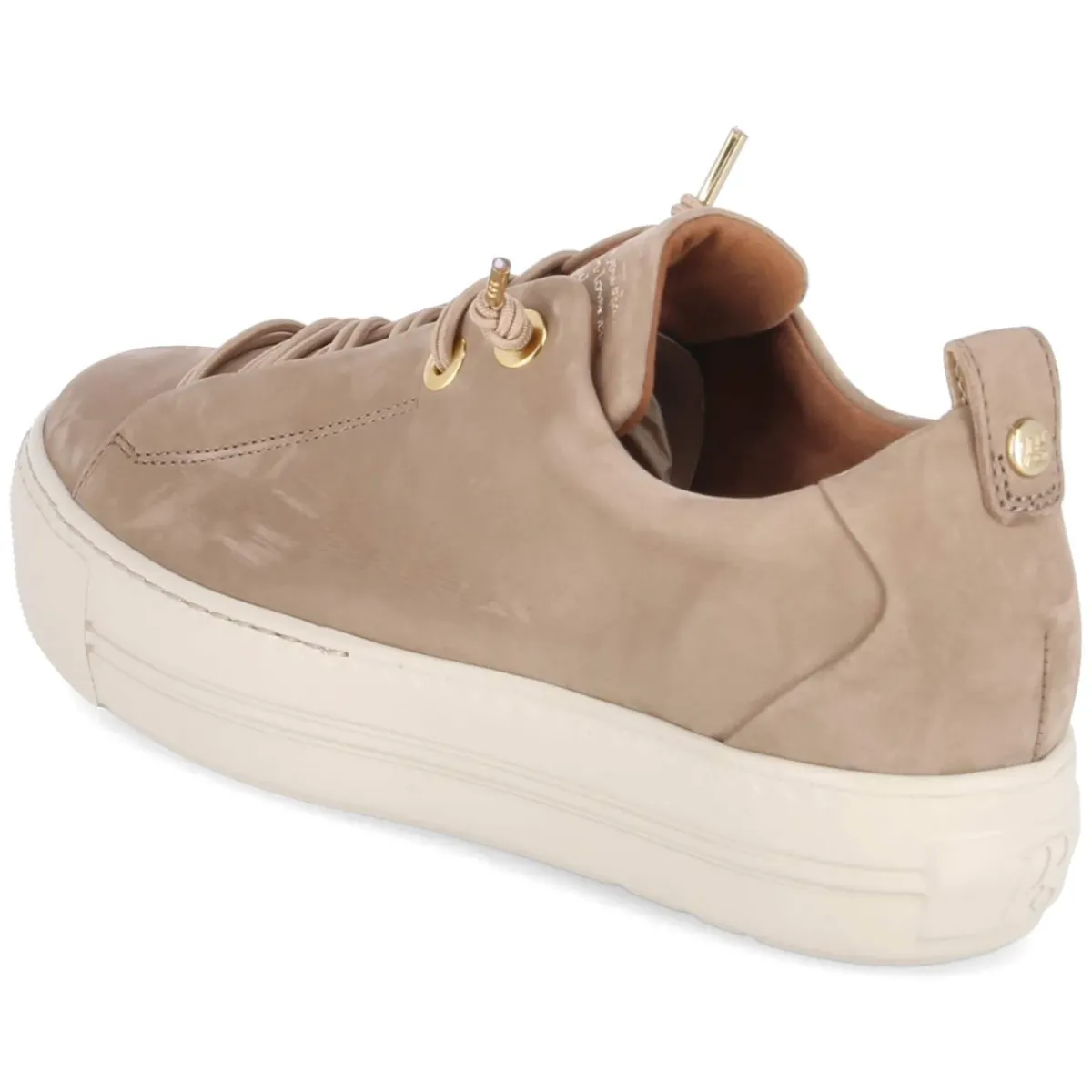 Der Low Sneaker von Paul Green präsentiert sich in sanftem Beige und verbindet edles Rauleder mit samtiger Oberfläche und dezenten goldenen Details. Die runde Spitze und die bequeme Elastikschnürung sorgen für eine moderne, unkomplizierte Silhouette, während die hautfreundliche Lederdecksohle und das gepolsterte Lederfußbett spürbaren Komfort bieten. Eine robuste Cupsohle liefert zuverlässigen Halt im Alltag, der verstärkte Fersenbereich stabilisiert zusätzlich. Das Modell fällt normal aus und begleitet mühelos von Büro bis Wochenendspaziergang. Modetipp: Zu einer cremefarbenen Cropped-Chino und einem leichten Trench entsteht ein eleganter Ton-in-Ton-Look; ein Feinstrickpullover und goldene Accessoires greifen die Metallic-Details stimmig auf.