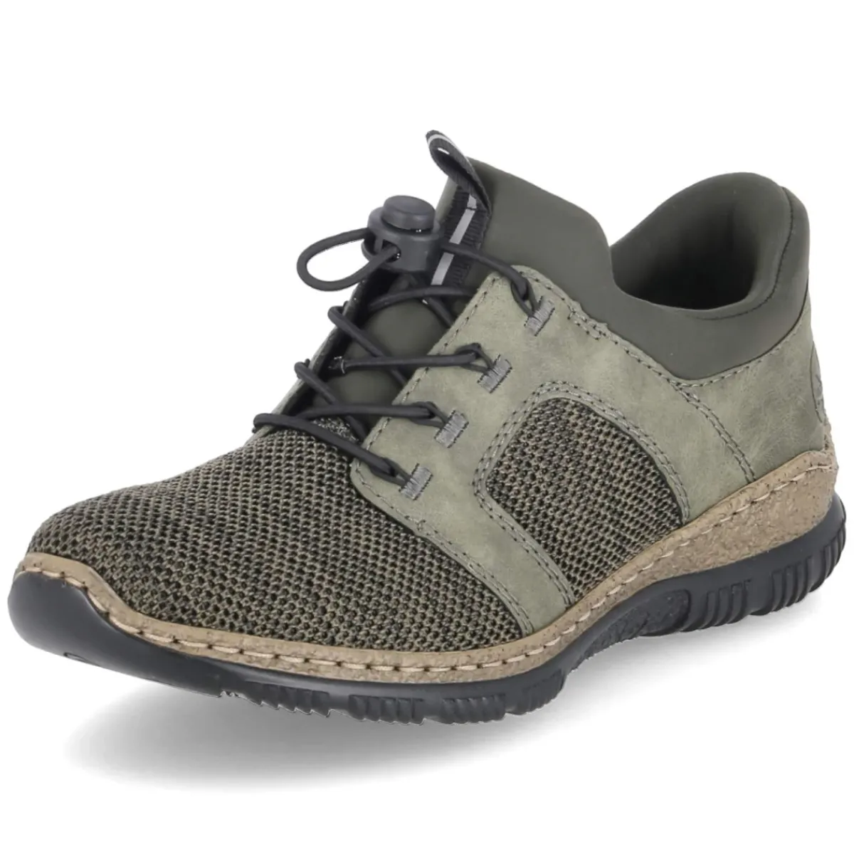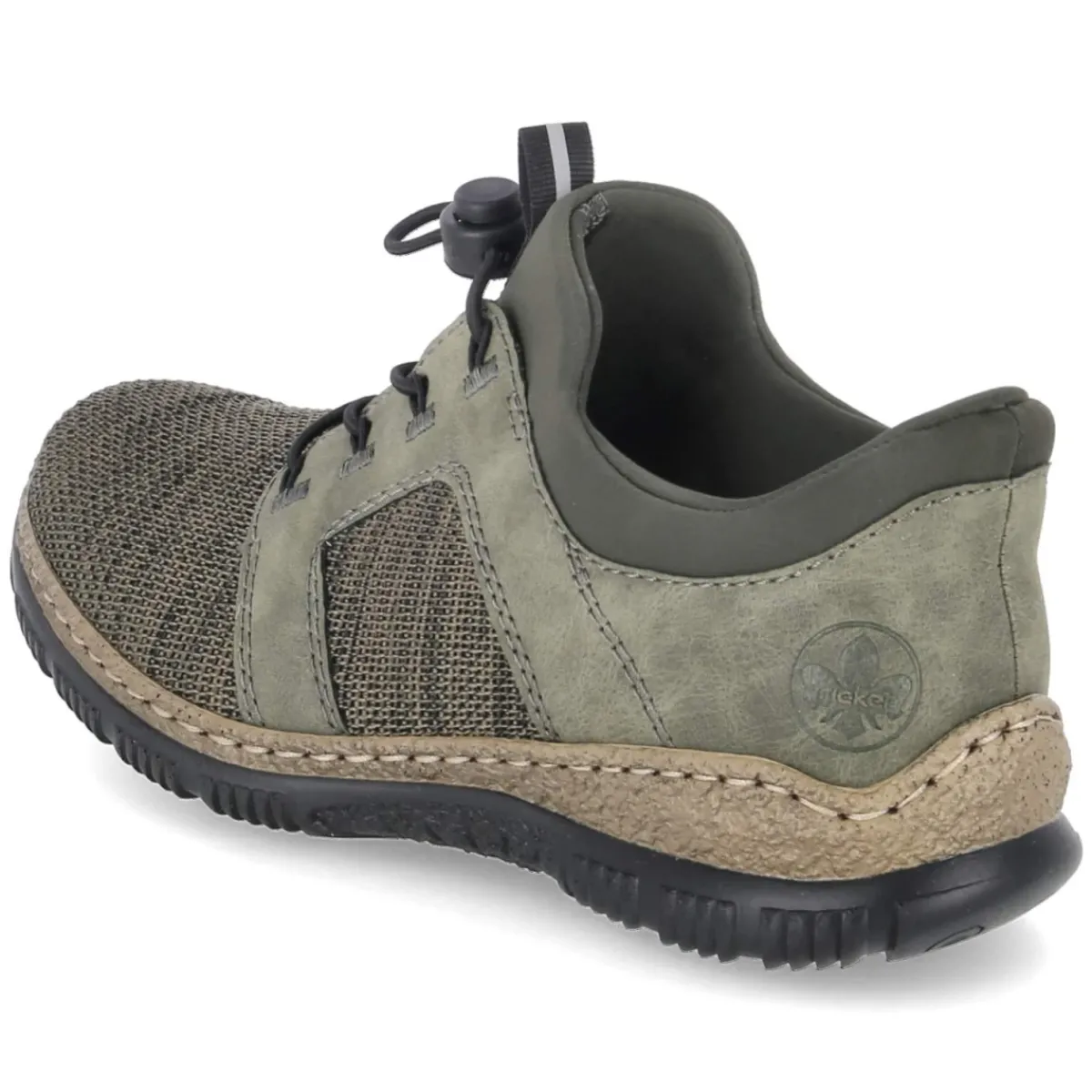 Der Low Sneaker von Rieker setzt in frischem Grün ein sportives Statement und verbindet Komfort mit modernem Look. Der Material-Mix aus Textil und Synthetik präsentiert sich mit Vorderteil in feiner Strickoptik, während der weiche Einstieg und der verstärkte Fersenbereich zusätzlichen Halt bieten. Der Schnellverschluss mit Elastikband in Schnüroptik ermöglicht ein unkompliziertes Handling, das relaxtes Leichtgewicht sorgt für mühelose Schritte. Das beste Memory-Foam-Fußbett passt sich dem Fuß an und federt jeden Schritt angenehm ab, die flexible, rutschhemmende Laufsohle unterstützt einen sicheren Tritt. Mit runder Spitze und normal ausfallender Passform ist das Modell ideal für Damen, die einen unkomplizierten Begleiter für Alltag und Freizeit wünschen. Praktisch: die Anziehlasche mit Reflektorstreifen erhöht die Sichtbarkeit. Modetipp: Zu Cropped-Jeans, weißem T-Shirt und Utility-Jacke ergibt sich ein lässig-urbaner Look.
