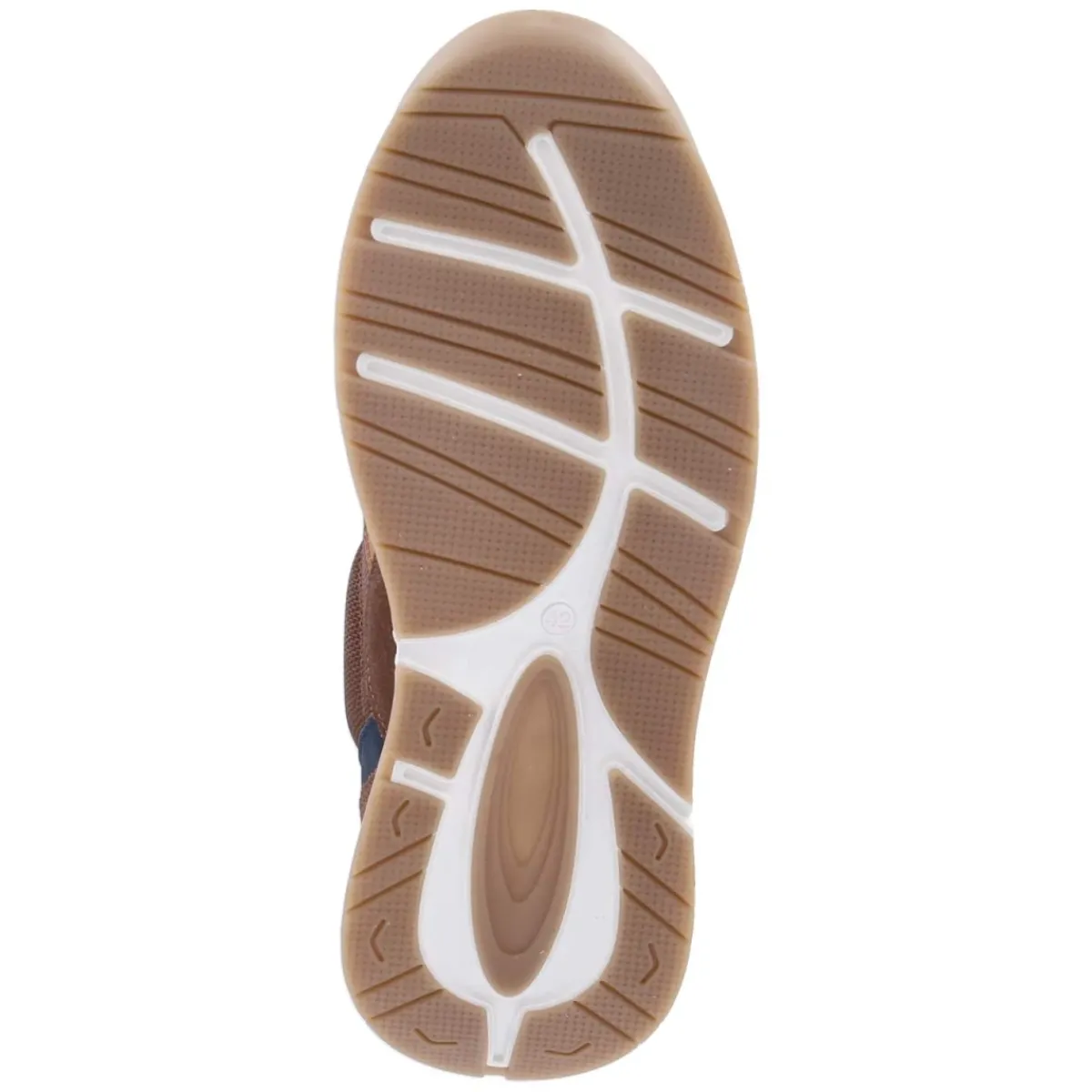Der Low Sneaker von Bullboxer verbindet einen robusten Material-Mix aus Leder und Textil mit einem maskulinen Auftritt in warmem Braun. Dunkelblaue Details und dezente Markenelemente setzen elegante Akzente, während der rund geschnittene Leisten und der klassische Schnürverschluss eine zeitlose Silhouette formen. Ein gepolsterter Einstieg, das weich abgefederte Fußbett und die textile Decksohle sorgen für angenehmen Komfort im Alltag. Verstärkte Fersen- und Zehenbereiche erhöhen die Haltbarkeit, die flexible, rutschfeste Laufsohle bietet verlässlichen Grip. Der Schuh fällt größengetreu aus und lässt sich vielseitig kombinieren – von urban bis smart-casual. Modetipp: Mit sandfarbener Chino, dunkelblauem Overshirt und Ledergürtel entsteht ein stimmiges Ensemble, das die farbigen Akzente des Sneakers aufgreift.