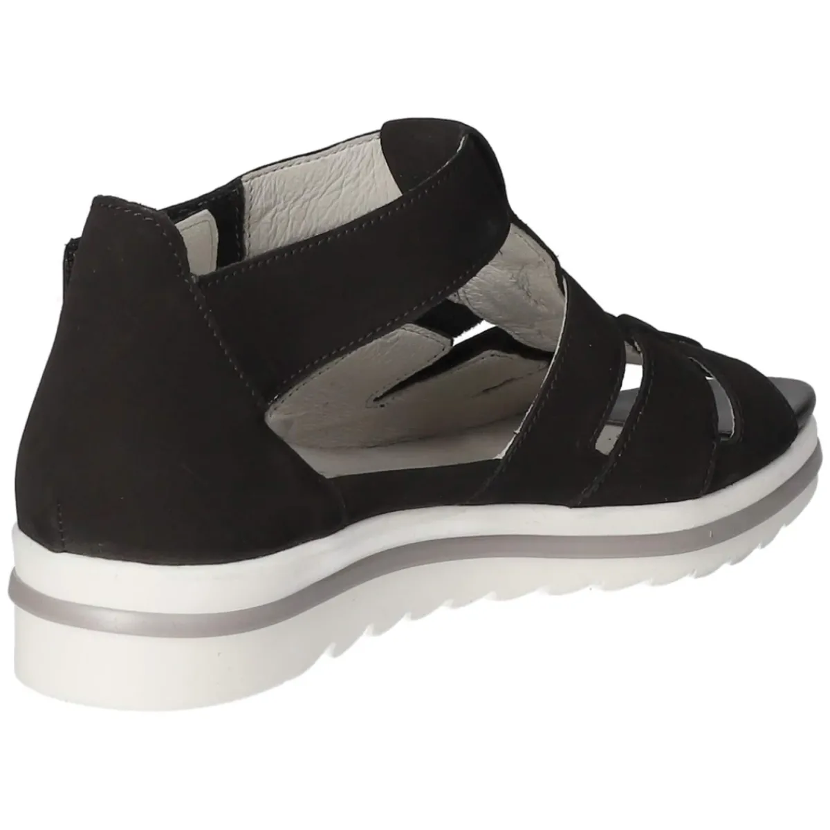 Waldläufer präsentiert mit dem Modell HAKURA eine vielseitige Damen-Sandale in klassischem Schwarz, die Komfort und Anpassungsfähigkeit in den Mittelpunkt stellt. Das Obermaterial aus weichem Rauleder umschließt den Fuß angenehm, während atmungsaktives Echtleder und eine hautfreundliche Lederdecksohle für ein ausgeglichenes Klima an warmen Tagen sorgen. Vier praktische Klettverschlüsse erlauben eine millimetergenaue Regulierung über Vorfuß, Rist und Ferse – ideal, wenn im Laufe des Tages mehr Platz benötigt wird. Die verstärkte Ferse gibt Halt, das gepolsterte Wechselfußbett entlastet und kann bei Bedarf gegen eigene Einlagen getauscht werden. Eine flexible, rutschhemmende Laufsohle unterstützt einen sicheren Tritt auf Stadtpflaster und Promenade. HAKURA fällt größengetreu aus und begleitet souverän durch Alltag und Reise. Modetipp: In Kombination mit fließender Leinenhose und ärmelloser Bluse wird der Look modern und sommerlich-elegant.