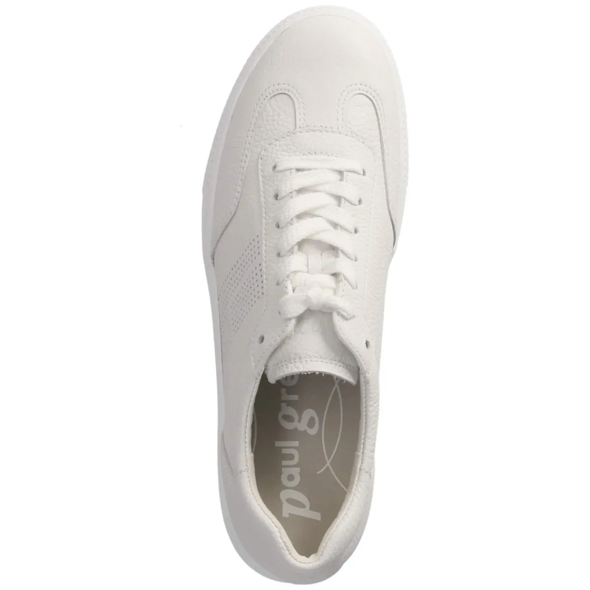 Der weiße Paul Green Sneaker für Damen verbindet puristische Ästhetik mit funktionalem Komfort. Atmungsaktives Echtleder mit seitlicher Lochung sorgt für ein ausgeglichenes Fußklima, während die runde Schuhspitze und der verstärkte Zehen- und Fersenbereich ein angenehmes, geschütztes Tragegefühl bieten. Die gepolsterte Wechseldecksohle und der weich gepolsterte Einstieg umspielen den Fuß, das komfortable Wechselfußbett lässt sich bei Bedarf austauschen oder gegen eigene Einlagen ersetzen. Über die Schnürung gelingt eine präzise Anpassung, die flexible, rutschhemmende Laufsohle unterstützt sicheren Halt auf urbanem Terrain. Markendetails setzen dezente Akzente, das Modell fällt größengetreu aus und punktet mit einer Lederdecksohle. Modetipp: Der cleane Weißton wirkt besonders frisch zu cropped Straight-Jeans und einem leichten Trenchcoat oder als Kontrast zum fließenden Midikleid.