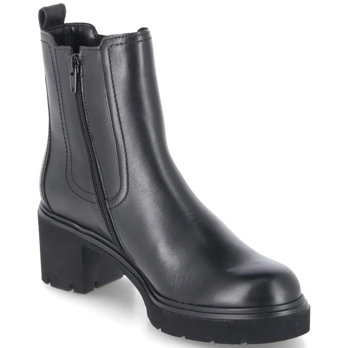 Die Gabor Stiefeletten für Damen verbinden elegante Optik mit verlässlichem Komfort. Schwarzes Glattleder in langlebiger Qualität umschmeichelt die zeitlose Silhouette, während der runde Leisten und die verstärkte Ferse für ein angenehmes Tragegefühl sorgen. Der 6 cm hohe Blockabsatz bietet Höhe und stabilen Stand, unterstützt von einer griffigen Profilsohle. Praktisch: der seitliche Reißverschluss und das Chelsea-inspirierte Design mit großem Elastikeinsatz außen erleichtern den Einstieg und geben flexiblen Halt. Innen überzeugt eine textile Decksohle mit komfortablem Wechselfußbett, das bei Bedarf herausgenommen oder gegen eigene Einlagen getauscht werden kann. Ein vielseitiger Begleiter für Büro, City und Abend. Modetipp: Zu Midirock in A-Linie und feinem Strick kombinieren, dazu ein langer Wollmantel und dezenter Goldschmuck für einen modernen, cleanen Look.