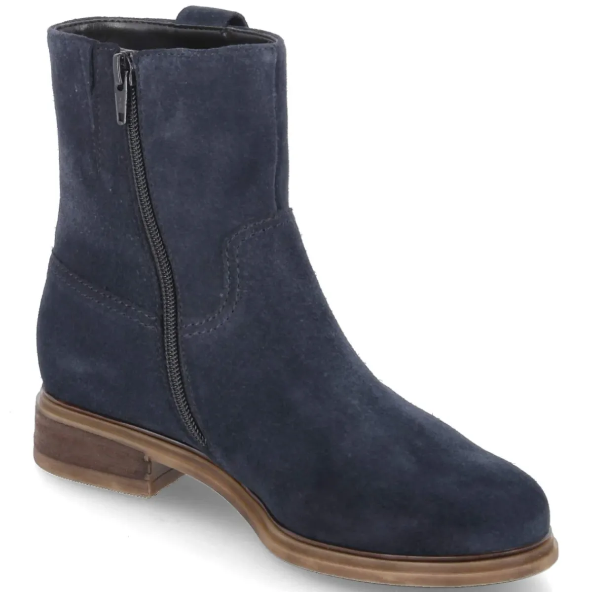 Zeitloser City-Style trifft Komfort: Die blauen Gabor Stiefeletten aus weichem Rauleder zeigen eine harmonische Silhouette mit runder Spitze und standfestem 3-cm-Blockabsatz. Das langlebige Echtleder schmiegt sich angenehm an, während ein leichtes Futter an kühlen Tagen Wärme spendet. Ein bequemer Reißverschlußeinstieg, seitliche Anziehlasche und ein kleiner Elastikeinsatz am Schaft erleichtern das An- und Ausziehen. Die flexible, rutschfeste Laufsohle sorgt für zuverlässigen Halt, die verstärkte Ferse für Stabilität. Dank Wechselfußbett sind persönliche Einlagen schnell integriert. Der Schnitt fällt normal aus und bietet alltagstaugliche Bequemlichkeit mit eleganter Note. Modetipp: Zu Midikleid und Strickcardigan entsteht ein moderner Kontrast, Ton-in-Ton mit blauer Crossbody-Bag wirkt der Look besonders stimmig.