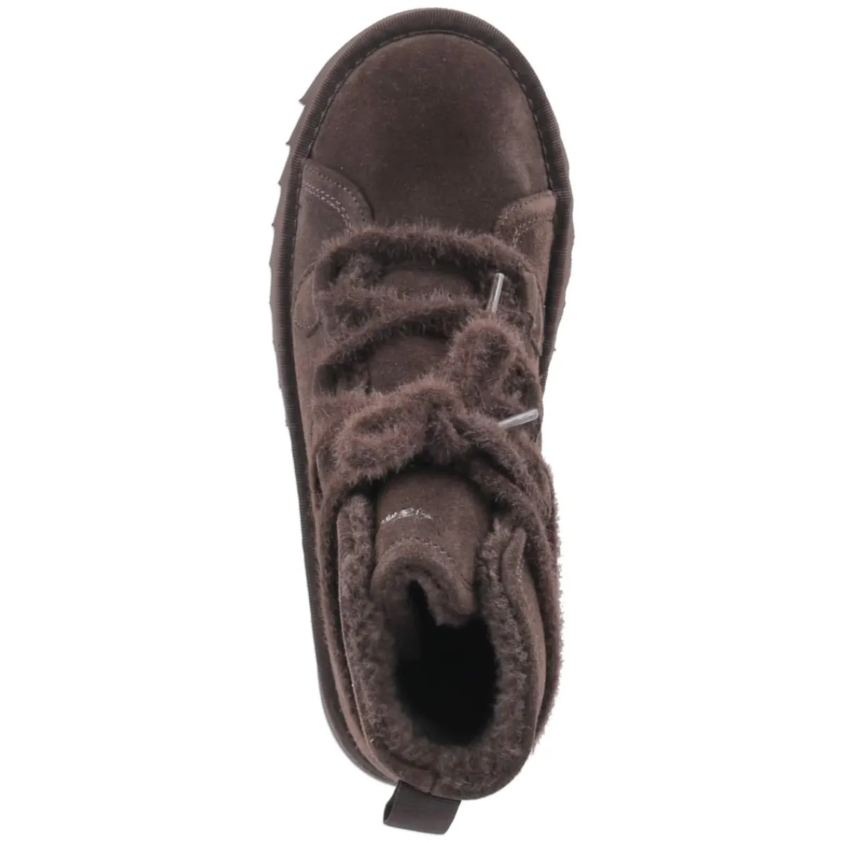 Die Winterboots von Tamaris vereinen robuste Funktion und feminine Lässigkeit: Rauleder aus langlebigem Echtleder in warmem Braun trifft auf eine dunkelbraune Plateausohle mit leichtem Profil. Das Modell fällt normal aus, die runde Spitze und die verstärkte Ferse sorgen für angenehme Stabilität, während flauschige Schnürsenkel den Look abrunden. Innen hält ein Warmfutter die Füße bei kalten Tagen behaglich, unterstützt von einer textilen Decksohle und einem weich gepolsterten Fußbett. Trotz solider Verarbeitung bleibt der Schuh ein relaxtes Leichtgewicht; die 3,5‑cm-Plateauhöhe streckt dezent und bietet Komfort im Alltag. Modetipp: mit kuscheligem Strickkleid, Wollmantel und grober Rippstrumpfhose kombinieren – dazu eine Crossbody-Bag in Cognac und Ton-in-Ton-Handschuhe.