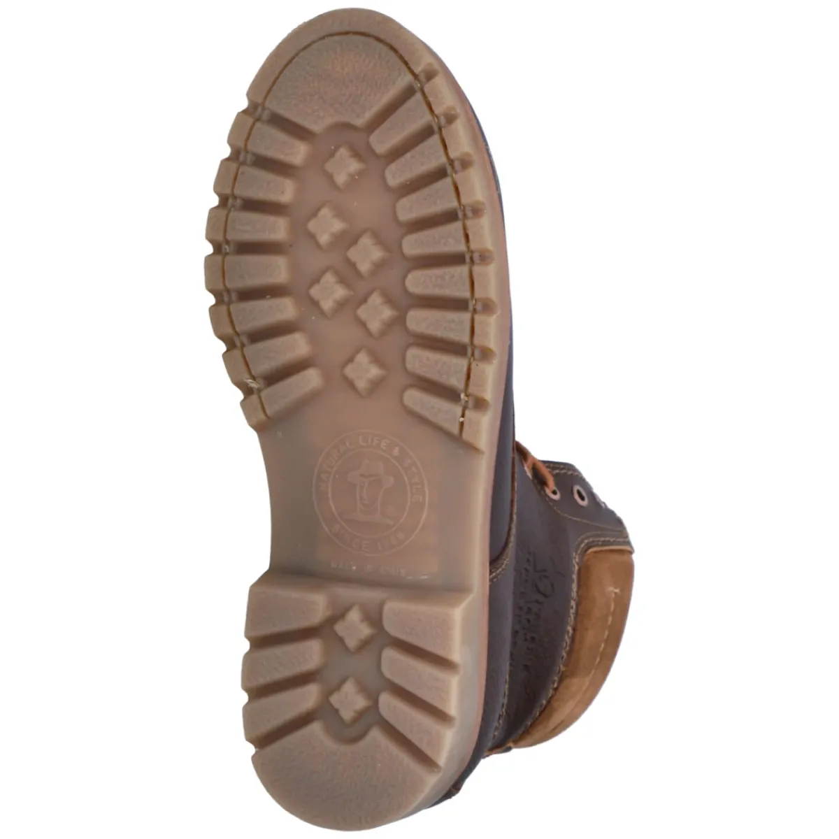Der Winterboot PANAMA 03 IGLOO von Panama Jack bringt zuverlässige Performance in klassischer Optik. Glattleder in Braun mit dunkelbraunen Markendetails trifft auf einen gesteppten Einstieg und eine verstärkte Fersenkappe. Das warme Futter sorgt an kalten Tagen für behagliches Klima, während die atmungsaktive Verarbeitung und die lederne Decksohle für Tragekomfort stehen. Durch die Schnürung lässt sich der Sitz individuell anpassen, die runde Spitze bietet Bewegungsfreiheit. Der 3,5 cm hohe Blockabsatz und die robuste, rutschhemmende Laufsohle mit markantem Profil geben Stabilität auf winterlichen Untergründen. Wasserfest und wasserabweisend konstruiert, bleibt der Fuß zuverlässig geschützt. Ein wechselbares Fußbett eröffnet Spielraum für persönliche Einlagen. Modetipp: Mit Raw-Denim, grob gestricktem Pullover und Wollmantel entsteht ein lässig-urbaner Winterlook.