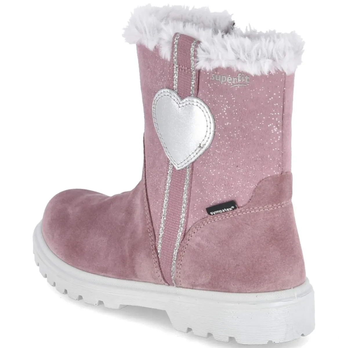 Die Winterstiefeletten SPIRIT von Superfit vereinen Funktion und Glanz für kalte Tage. Das Obermaterial aus Leder und Textil ist dank Sympatex wasserfest und atmungsaktiv, das warme Futter hält kleine Füße zuverlässig warm. Der bequeme Reißverschluss erleichtert das An- und Ausziehen, während die runde Schuhspitze und die mittlere Weite M für ein angenehmes Tragegefühl sorgen. Eine herausnehmbare, textile Decksohle ermöglicht einfaches Lüften und Größenkontrolle. Die flexible, profilierte Laufsohle mit rutschhemmenden Eigenschaften bietet sicheren Halt, der 3 cm hohe Blockabsatz sorgt für Stabilität. In zartem Rosa mit glitzerndem Schaft und silbernem Herz wird jedes Winteroutfit zum Highlight. Fällt normal aus. Modetipp: Zu Thermostrumpfhose, Strickkleid und wattiertem Parka in Beerentönen entsteht ein stimmiger Look, der Wärme und Stil verbindet.