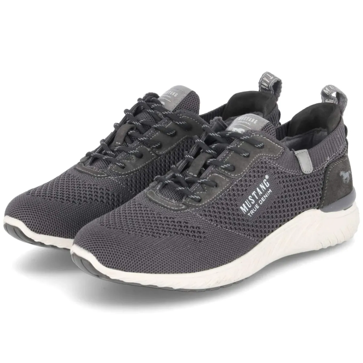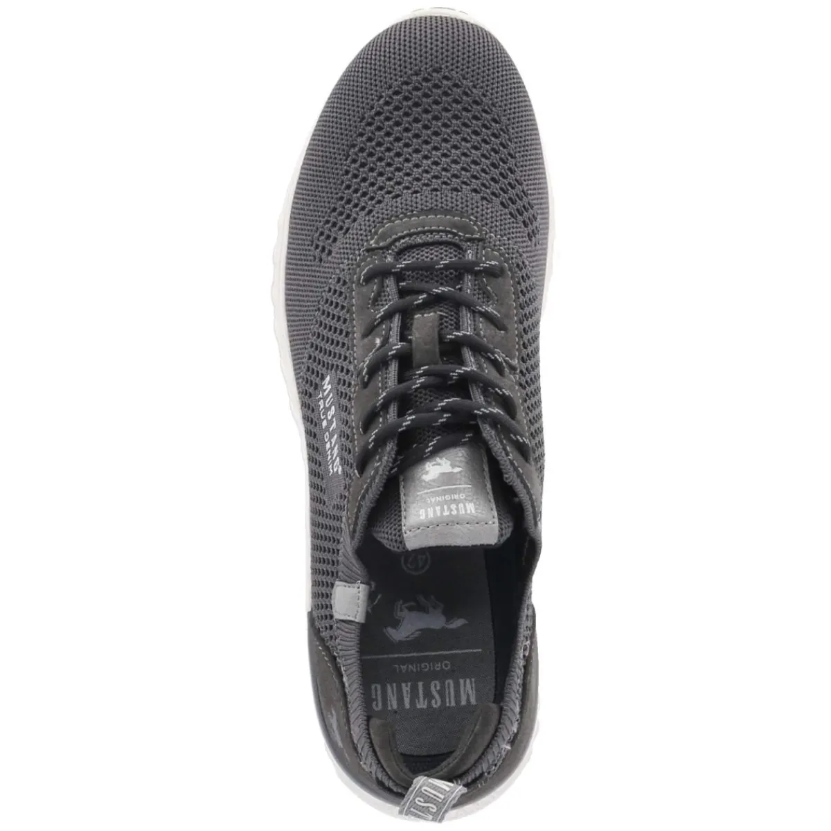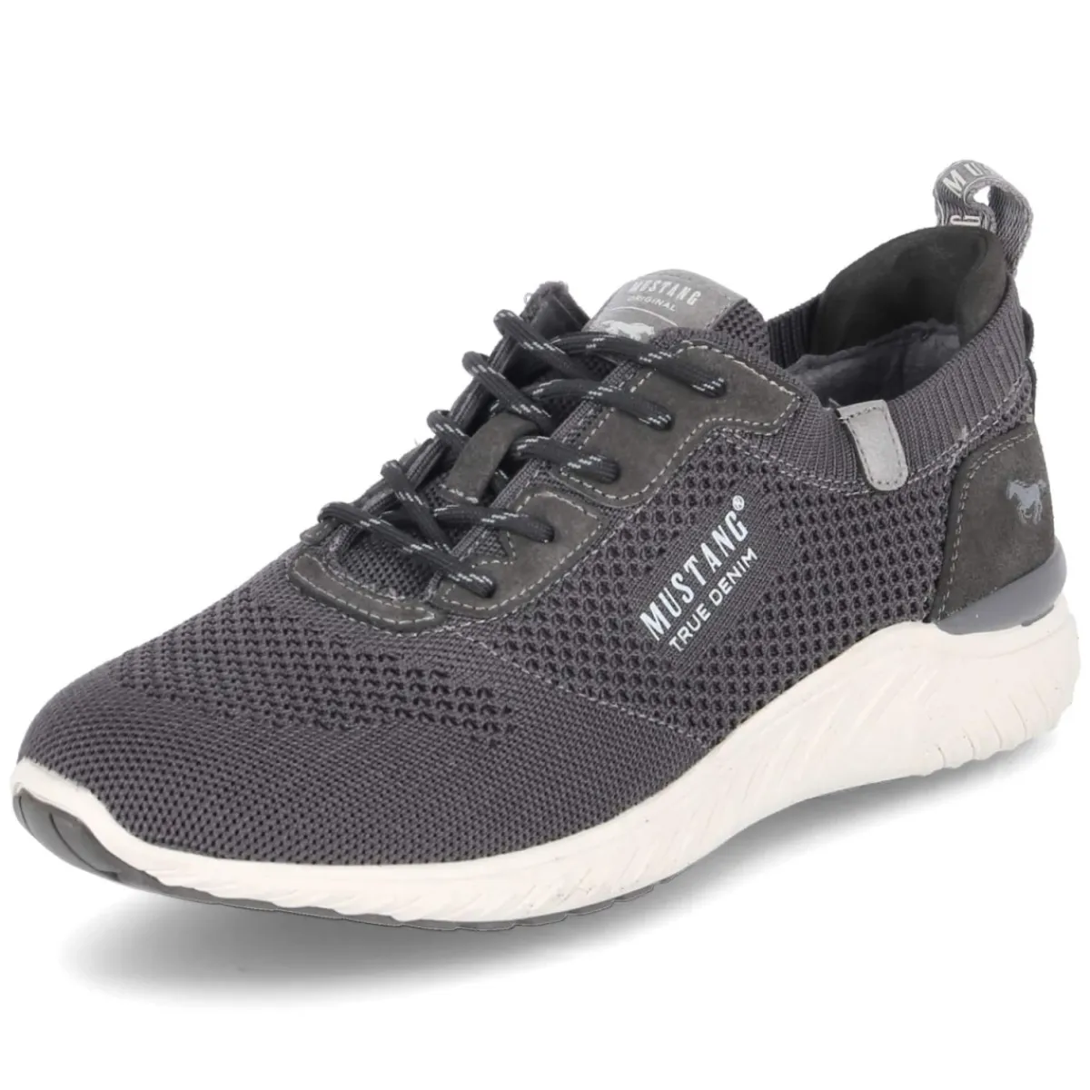 Der Low Sneaker von Mustang präsentiert sich in zeitlosem Grau und vereint sportlichen Look mit hohem Tragekomfort. Das Obermaterial aus Textil und Synthetik mit luftiger Mesh-Oberfläche und dezent gelochtem Muster sorgt für angenehme Belüftung, während der gepolsterte Einstieg und das weich gepolsterte Fußbett den Wohlfühlfaktor unterstreichen. Eine runde Schuhspitze, die klassische Schnürung sowie der verstärkte Fersenbereich garantieren sicheren Halt. Die flexible, griffige Laufsohle spielt ihre Stärken im Alltag aus und macht den Herrensneaker zum zuverlässigen Begleiter. Dank normaler Passform und Wechselfußbett lässt sich bei Bedarf eine eigene Einlage nutzen, ohne auf Komfort zu verzichten. Typische Markendetails runden das Modell stilsicher ab. Modetipp: Mit schmaler Denim, aufgekrempeltem Saum und einem leichten Strickpullover entsteht ein moderner Casual-Look, der vom Büro bis ins After-Work unkompliziert funktioniert.