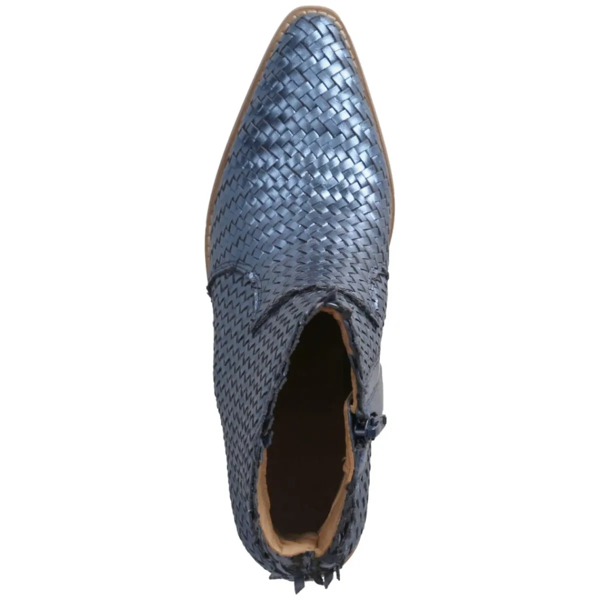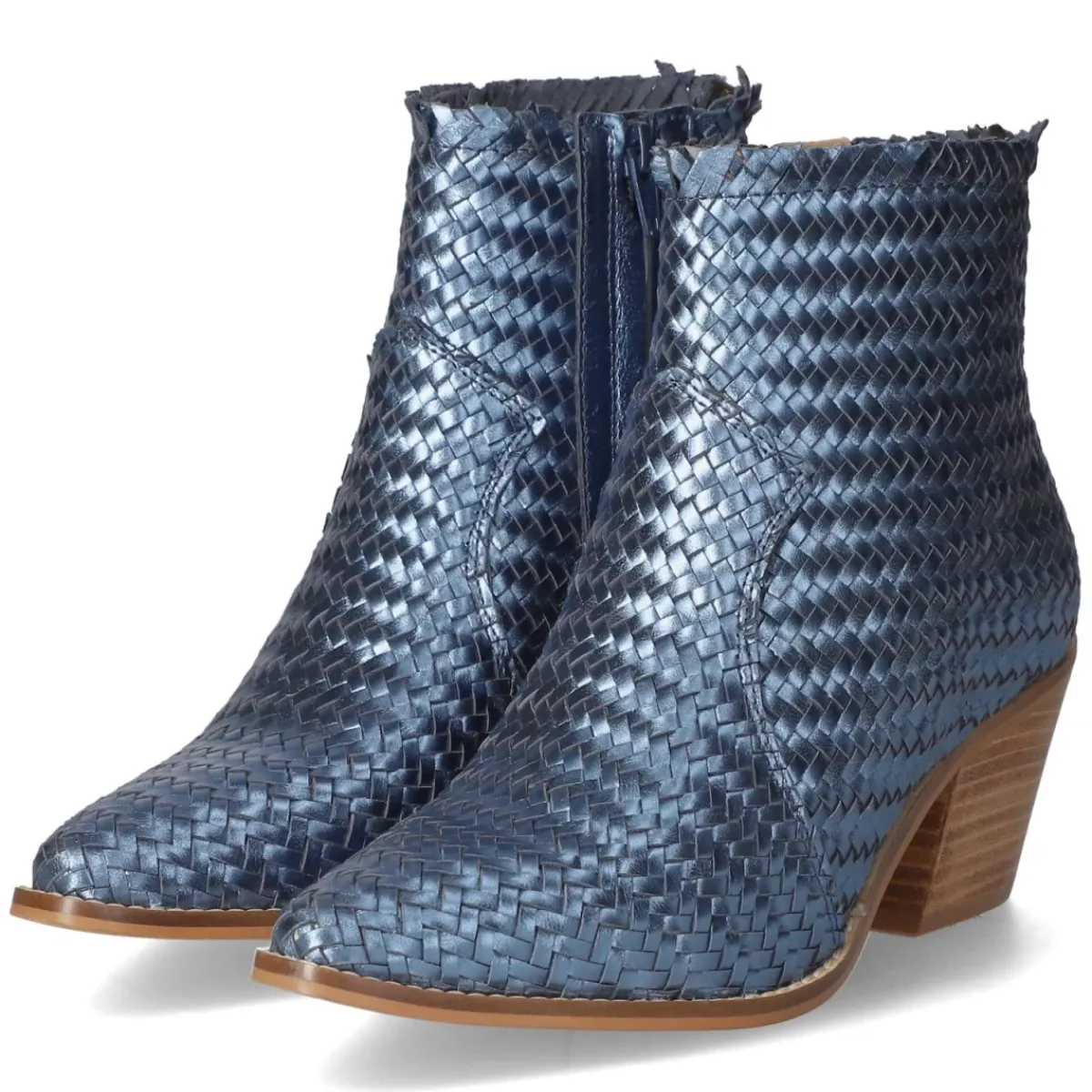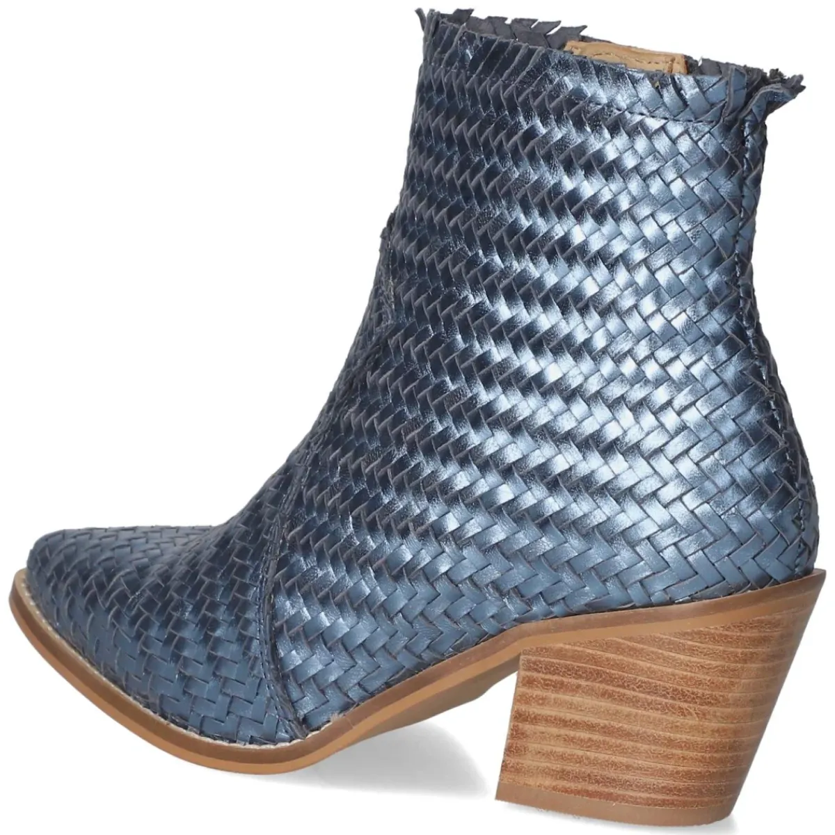 Der Ankle Boot von Bullboxer vereint feminine Linienführung mit urbaner Lässigkeit. Blaues Glattleder mit schimmernder Metallic-Note verleiht dem spitzen Leisten moderne Eleganz, während der 6 cm hohe Blockabsatz für souveränen Stand sorgt. Atmungsaktives Echtleder und ein gepolstertes Lederfußbett umhüllen den Fuß komfortabel, die flexible, rutschfeste Laufsohle bietet verlässliche Traktion im Alltag. Ein bequemer Reißverschlußeinstieg mit Zipper in geflochtener Optik erleichtert das An- und Ausziehen, verstärkte Zehen- und Fersenpartien erhöhen die Formstabilität. Handwerkliche Verarbeitung trifft auf zeitloses Design, das von Büro bis Abend mühelos funktioniert. Der Schnitt fällt normal aus und streckt die Silhouette wirkungsvoll. Modetipp: Zu Cropped-Denim und Wollmantel oder zu Satinkleid und blickdichter Strumpfhose entsteht ein stilvoller Kontrast aus Glanz und Struktur.