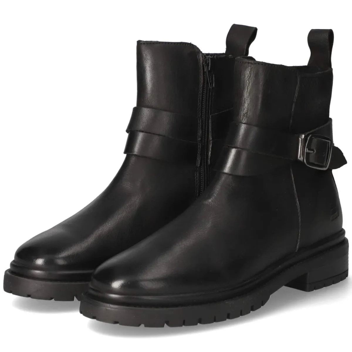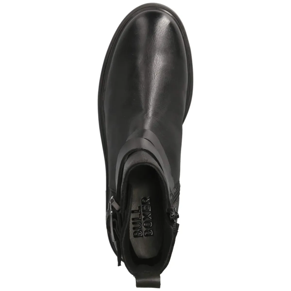Die schwarzen Damen-Boots von Bullboxer verbinden urbanen Charme mit zuverlässigem Komfort. Gefertigt aus robustem Echtleder in fein verarbeitetem Glattleder wirken sie zeitlos und wertig. Die runde Schuhspitze und der 4 cm hohe Blockabsatz bieten Stabilität, während der bequeme Reißverschlußeinstieg, unterstützt von Anziehlasche und verstärkter Ferse, das An- und Ausziehen erleichtert. Ein gepolstertes Fußbett und die flexible, griffige Laufsohle begleiten entspannt durch lange Tage in der Stadt. Zwei Zierriemen mit Zierschnalle sowie ein dezentes Markendetail setzen stilvolle Akzente. Die pflegeleichte Decksohle aus Synthetik erweist sich im Alltag als praktisch, die Passform fällt normal aus. Ein Allrounder, der sowohl zu Denim als auch zu femininen Silhouetten funktioniert. Modetipp: Mit Skinny-Jeans, geripptem Rollkragen und einem kastigen Wollmantel entsteht ein klarer Look, zum Midikleid bringt der Boot spannende Kontraste.